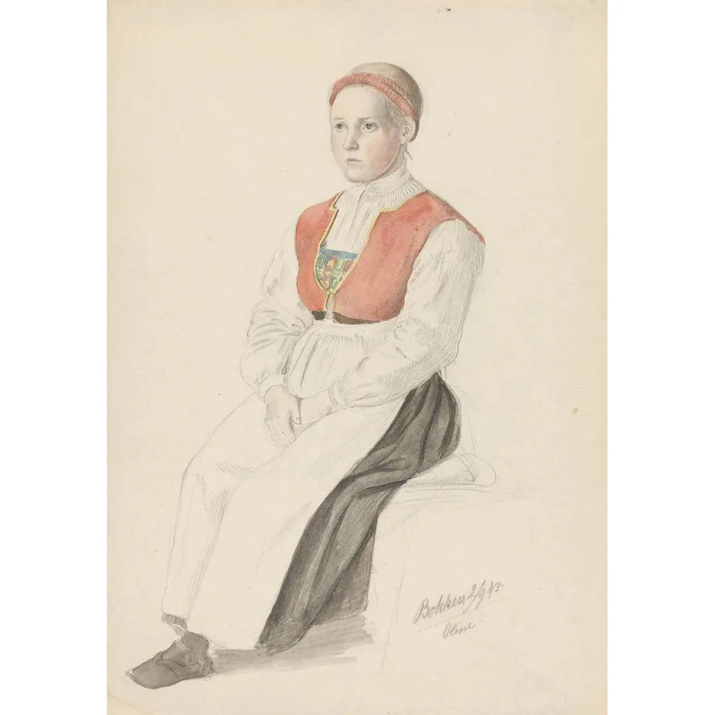 Fille en costume Oline Bukken : un art print vibrant de la tradition