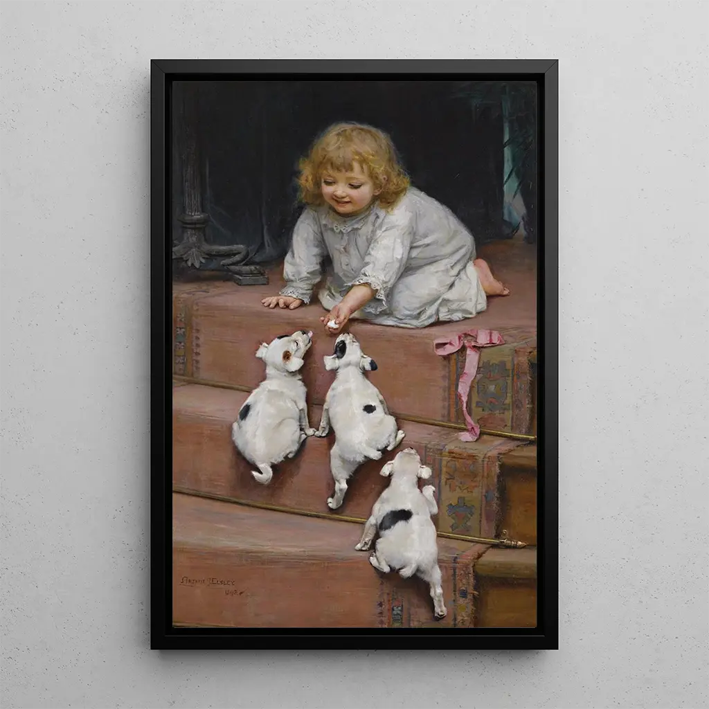 A tie arrival: a moment suspended in time In this art print of A tie arrival, Arthur John Elsley captures a delicate moment where nature and humanity meet. The canvas, bathed in soft light, depicts children joyfully playing with animals in a pastoral setting. The pastel colors, blended with vibrant touches, evoke an atmosphere of happiness and innocence. The artist's technique, blending realism and impressionism, brings life to the expressions of the children and the texture of the surrounding landscapes, creating a scene that is both lively and poetic. Arthur John Elsley: a master of the pastoral genre Arthur John Elsley, active at the end of the 19th and beginning of the 20th century, is renowned for his touching representations of rural life and children. Influenced by the Pre-Raphaelite movement and realism, he was able to capture childhood innocence through his works. His paintings, often centered on themes of nature and daily life, reflect an era when industrialization was beginning to transform the British landscape. Elsley managed to preserve a nostalgic vision of the countryside, making him a appreciated artist of his time and beyond. An artistic reproduction with multiple assets This art print of A tie arrival is an ideal decorative choice to add a touch of softness to your interior. Whether in a living room, a child's bedroom, or an office, this piece invites dreaming and contemplation. Its reproduction quality guarantees details faithful to the original work, while offering undeniable aesthetic appeal. With its soothing colors and joyful atmosphere, this canvas will appeal to all who contemplate it, making it a true asset for any interior decoration.