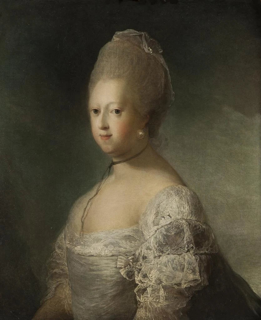 Carl Gustaf Pilo's style is distinguished by its finesse and attention to detail, essential characteristics of portraiture of his era. In "Caroline Mathilde Queen of Denmark," the choice of colors, the delicacy of the features, and the subtle lighting illuminating the queen's face demonstrate exceptional mastery. The composition is carefully orchestrated, with a staging that emphasizes the royal status of the subject while revealing touching intimacy. The drapery of the gown, with its skillfully rendered folds, adds a tactile dimension to the piece, inviting the viewer to feel the texture and movement. Pilo succeeds in transcending the simple portrait by offering a representation that speaks to the soul, evoking both the outer beauty and the inner depth of Caroline Mathilde.