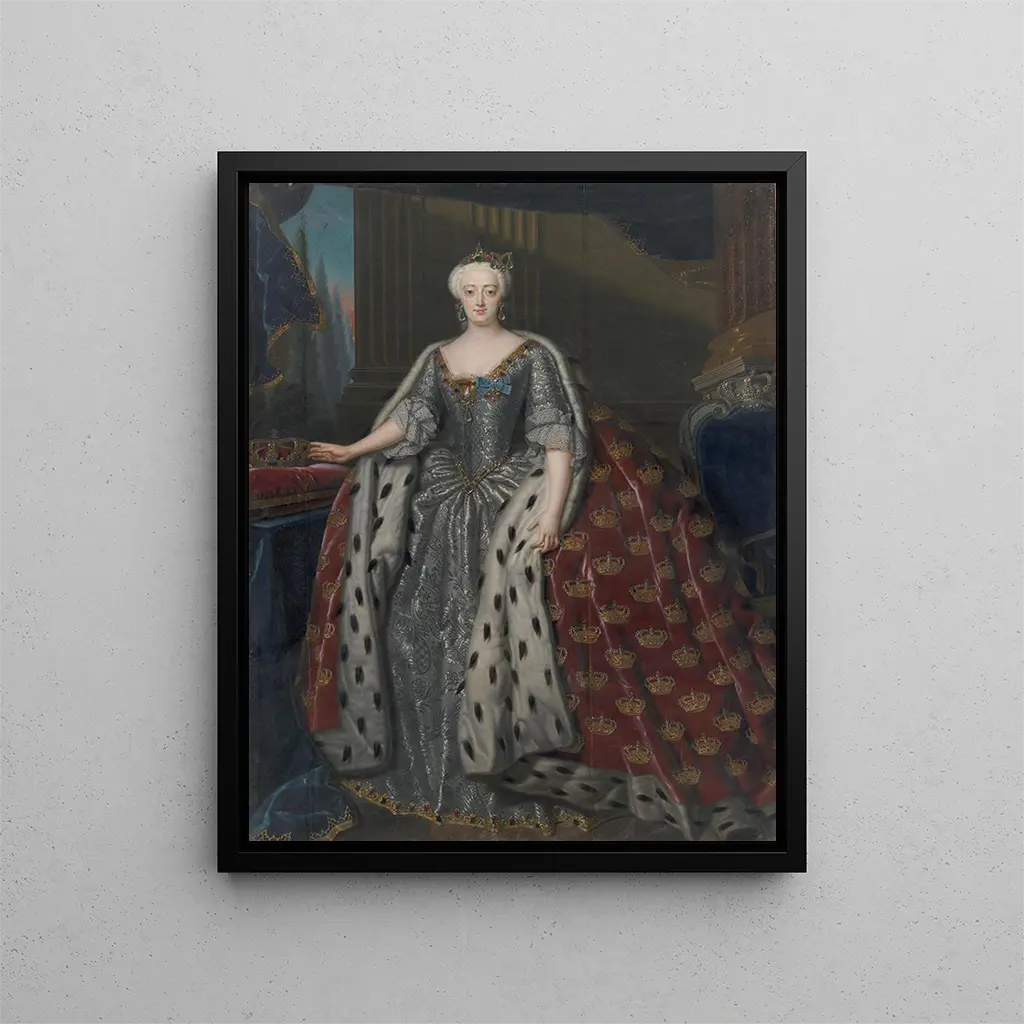 Andreas Müller's style is distinguished by meticulous precision and attention to detail that characterize court portraits. The art print of Sophie Madeleine is marked by a palette of delicate colors, where pastel shades blend harmoniously to create an atmosphere of serenity and elegance. The sumptuous drapes of her dress, carefully rendered, evoke luxury and sophistication, while the queen's posture, both graceful and commanding, reflects her authority. Every element of the composition, from the choice of accessories to the background, has been thoughtfully designed to reinforce the image of a sovereign who is both accessible and distant—a central figure in the political and cultural landscape of her time.