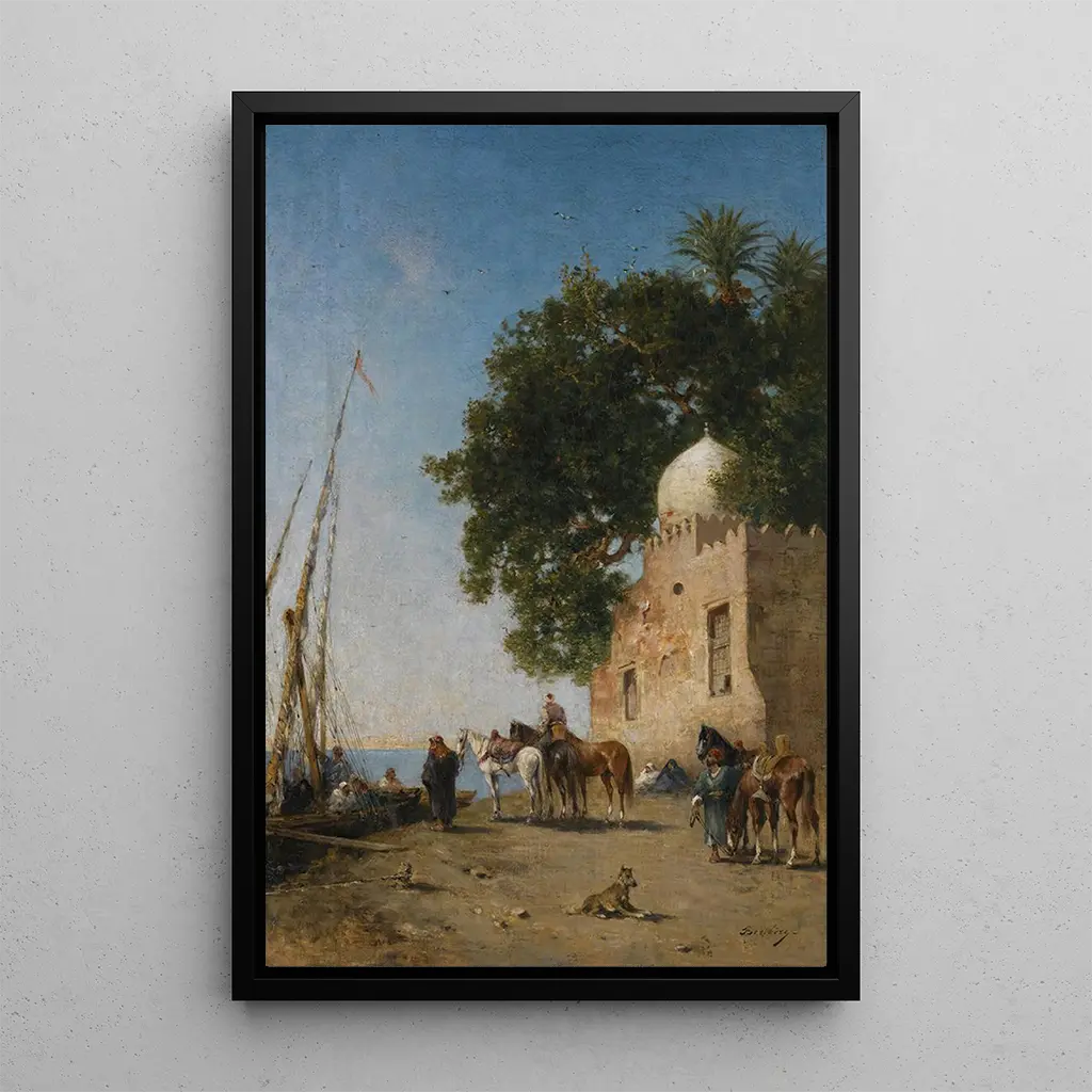 In this art print of the painting "Beni Souef Egypt," Narcisse Berchère transports us to the heart of an Egyptian landscape filled with mystery and beauty. The composition highlights warm, golden hues, evoking the sunlight on the dunes. The meticulous details of the characters and natural elements create an atmosphere of tranquility, where time seems to stand still. The artist employs an oil painting technique that brings textures to life, rendering each grain of sand and each reflection on the water with striking precision. This artwork invites contemplation, offering a glimpse into a bygone era, while celebrating the majesty of nature.
