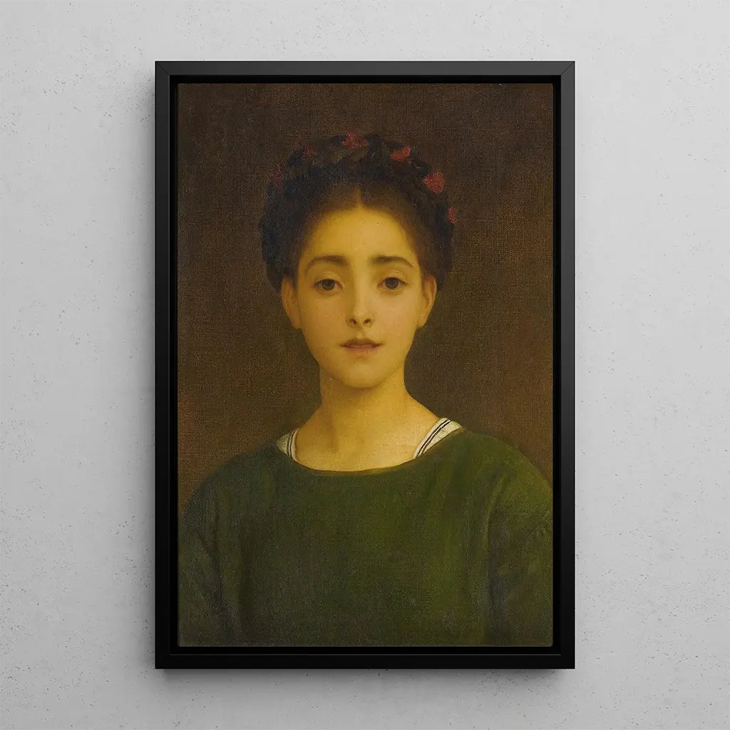 In "Leandra", Frederic Leighton captures the very essence of feminine beauty through a harmonious and delicate composition. The canvas, bathed in warm colors and soft shades, evokes an atmosphere of serenity and contemplation. The face of the young woman, gently illuminated, draws the eye and invites reflection. Leighton's technique, blending realism with a touch of romanticism, brings this female figure to life, who seems both dreamy and full of grace. Every detail, from the drapery to the light reflections, testifies to exceptional craftsmanship and rare artistic sensitivity.
