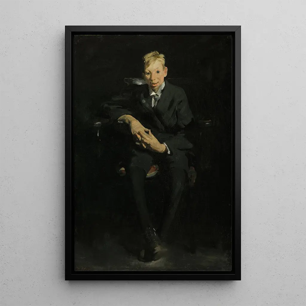 In this captivating artwork, George Wesley Bellows immerses us in the heart of early 20th-century city life. Frankie, the organ boy, is depicted with striking intensity, his dynamic posture and determined gaze capturing the essence of childhood in an urban environment. The vivid colors and bold contrasts, typical of Bellows' style, infuse the scene with palpable energy. The oil painting technique, with its bold brushstrokes, creates a lively and almost auditory atmosphere, evoking the noise of the streets and the melody of the street organ. This art print of Frankie the Organ Boy is a true invitation to explore the vitality of everyday life.