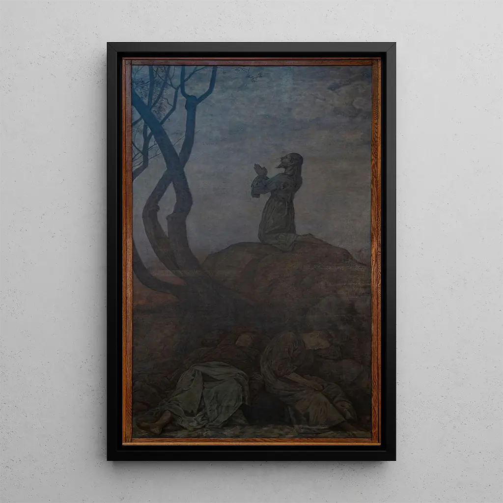 Hans Thoma, a prominent figure in German art at the end of the 19th century, mastered blending influences of Romanticism and Symbolism. His career is marked by a quest for spirituality and a fascination with nature, reflected in his works. "Christ at the Mount of Olives" fits into a context where religious art is reinterpreted, reflecting the spiritual concerns of the time. Thoma, through his unique approach, succeeded in giving new life to biblical stories, making them accessible and emotionally resonant for his contemporary audience.