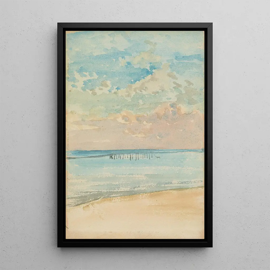 Southend art print: a harmony between sky and sea The "Southend art print" depicts a peaceful scene where the warm colors of twilight blend with the silvery reflections of the water. Whistler's technique, characterized by delicate brushstrokes and a subtle palette, creates an atmosphere of serenity. The shades of pink, orange, and blue blend harmoniously, inviting the viewer to immerse themselves in this poetic vision of a fleeting moment. The composition, centered on the horizon, draws the eye toward the distance, suggesting infinite contemplation and a deep connection with nature. James Abbott McNeill Whistler: a pioneer of the Impressionist movement James Abbott McNeill Whistler, an iconic figure of Impressionism, captured the fleeting beauty of landscapes and scenes of everyday life. Born in 1834 in the United States, he settled in Paris, where he was influenced by European masters and the artistic currents of his time. Whistler developed a unique style, emphasizing color harmony and composition. His work "Southend art print" reflects his interest in light and atmospheric effects, making him a forerunner in exploring color and form. His legacy endures, inspiring many contemporary artists. A decorative acquisition with multiple advantages Choosing a reproduction of "Southend art print" is a wise choice to enhance your interior. Whether in a living room, office, or bedroom, this art print adds a touch of sophistication and calm. The quality of the reproduction guarantees fidelity to the original artwork, allowing appreciation of every detail and nuance. Its aesthetic appeal, with soothing colors and a dreamy atmosphere, makes it a decorative element that harmoniously fits various interior styles. An art print that invites dreaming and contemplation, while enriching your living space.