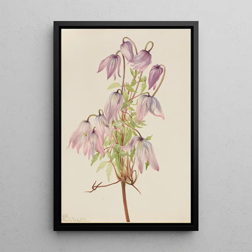 The art print Clématite pseudo-alpine Clematis pseudoalpina by Mary Vaux Walcott evokes the delicate beauty of mountain flowers. With its soft shades of violet and white, this canvas captures natural light, creating a serene and calming atmosphere. The meticulous details of the petals and leaves reveal a precise painting technique, where each brushstroke seems to breathe life. The piece invites contemplation of the wonders of nature, reminding us of the fragility and splendor of alpine ecosystems.