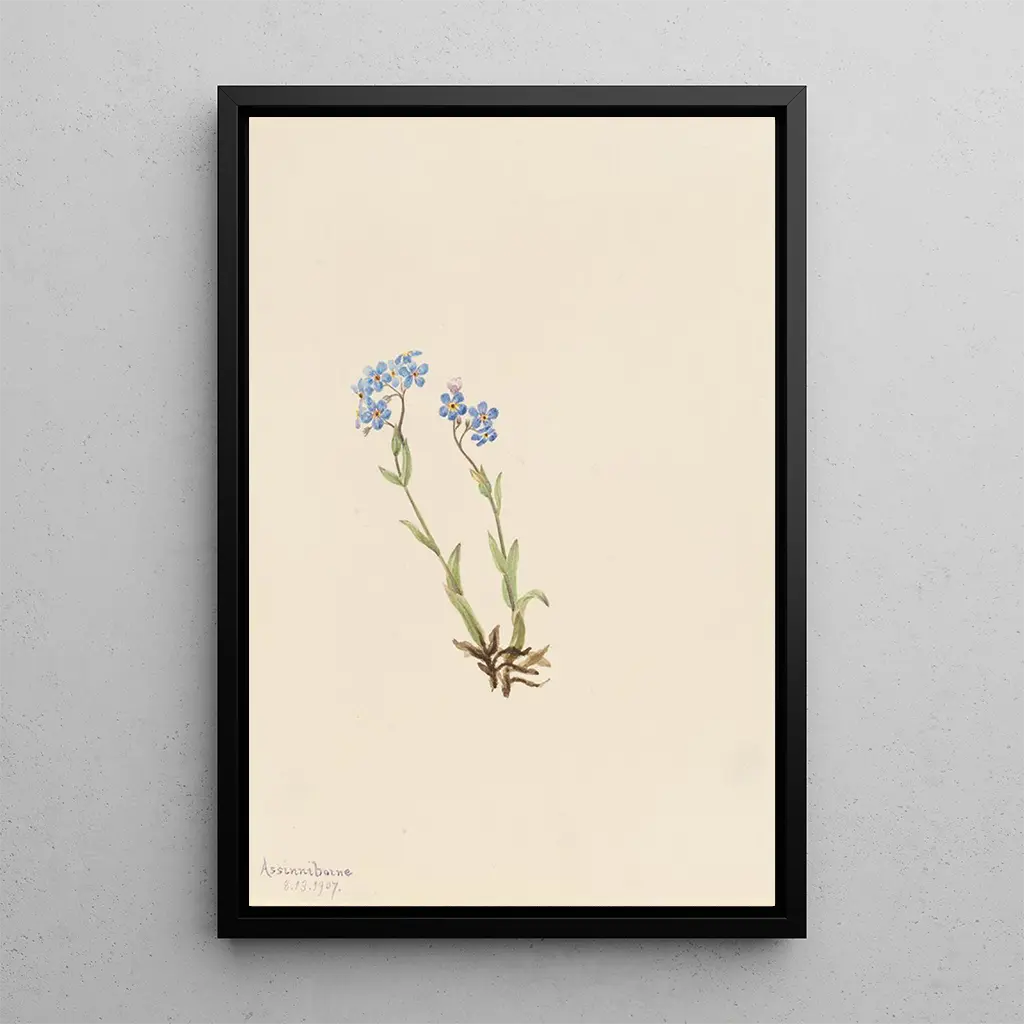 Myosotis of the Alps: a tribute to the fragility of memories The Myosotis of the Alps, or Myosotis alpestris, is an art print that evokes softness and nostalgia. With its small blue flowers, this reproduction captures the eye and stirs deep emotions. The delicate shades of blue and green, combined with a meticulous painting technique, create a peaceful and dreamy atmosphere. Every detail is carefully rendered, allowing the viewer to feel the fragility and beauty of this alpine plant. The Myosotis of the Alps thus becomes a symbol of precious memories, a reminder of the ephemeral beauty of nature. Mary Vaux Walcott: an artist dedicated to nature Mary Vaux Walcott is recognized for her pioneering role in botanical art in the early 20th century. Her works, which combine scientific precision and artistic sensitivity, testify to her commitment to nature. Influenced by American landscapes and contemporary artistic movements, she captured the essence of plants with remarkable finesse. Her paintings, like the Myosotis of the Alps, are not only works of art but also important contributions to the documentation of flora. Walcott thus left a lasting legacy, blending passion for botany and artistic talent. A decorative acquisition with multiple assets The art print of the Myosotis of the Alps is a decorative choice that adapts to various environments, whether a living room, office, or bedroom. Its print quality and fidelity to the original colors make it a sought-after piece for art and nature enthusiasts. With its aesthetic appeal, this canvas brings a touch of freshness and serenity to your interior. By choosing this piece, you select a decorative element that enriches your space while celebrating the delicate beauty of alpine flora.