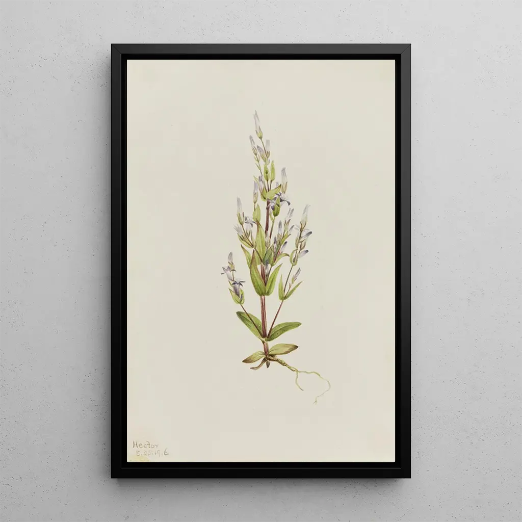 Gentian acaule Gentiana acuta: a tribute to alpine beauty The art print of the Gentian acaule, or Gentiana acuta, immerses us in a captivating floral universe. This work by Mary Vaux Walcott highlights the delicacy of the blue petals, which seem to dance under the mountain light. The shades of blue and green evoke alpine meadows, while the subtle background enhances the splendor of this iconic plant. The watercolor technique, mastered by the artist, captures the transparency and vibrancy of the colors, creating a soothing and contemplative atmosphere. Every detail, from the veins of the leaves to the reflections of light, demonstrates meticulous observation of nature. Mary Vaux Walcott: a pioneer of botanical art Mary Vaux Walcott, active in the early 20th century, is recognized for her unique approach to botanical art. Influenced by the artistic movements of her time, she skillfully combined scientific precision with artistic sensitivity. Her works, often inspired by North American flora, reflect a deep respect for nature and a desire to preserve it. As a member of the American Botanical Society, Walcott contributed to the documentation of plant species, making her work a valuable legacy for botanists and artists alike. Her passion for nature and her commitment to conservation make her an emblematic figure in floral art. A decorative acquisition with multiple advantages The art print of the Gentian acaule is an ideal decorative piece to bring a touch of nature into your interior. Whether in a living room, office, or bedroom, this artwork evokes the serenity of alpine landscapes and invites contemplation. Its printing quality guarantees fidelity to the colors and details of the original, while adding an artistic dimension to your decor. The aesthetic appeal of this canvas makes it a perfect choice for those wishing to enrich their living space with a piece that celebrates the beauty of flora. Treat yourself to this art print to transform your environment into a haven of peace.