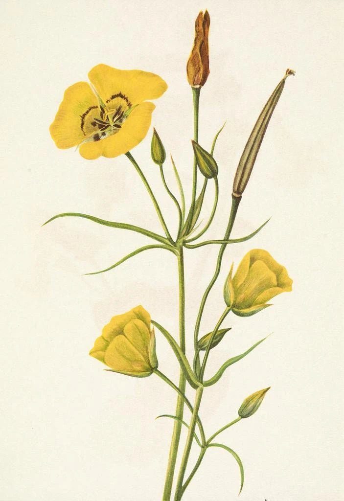 Art print | Golden chalice Mariposa Calochortus clavatus - Mary Vaux Walcott Source: Reproduction | Calice doré Mariposa Calochortus clavatus - Mary Vaux Walcott