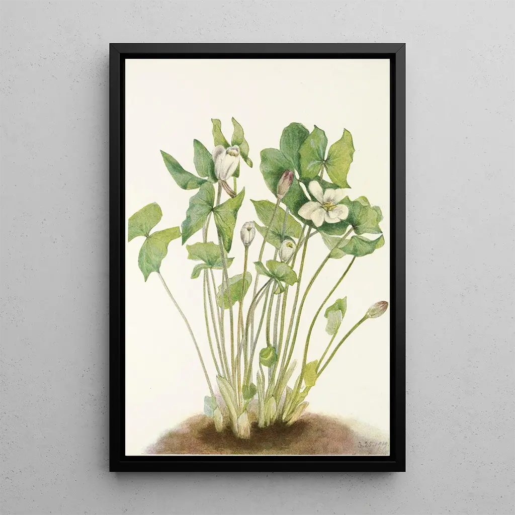 Jeffersonia diphylla: an enchanting journey into botanical beauty The art print of Jeffersonia diphylla, signed by Mary Vaux Walcott, transports us into a captivating botanical world. With its delicate white flowers and tender green leaves, this piece evokes the freshness of springtime undergrowth. The watercolor technique captures subtle nuances of light, creating a soft and soothing atmosphere. Every detail is meticulously observed, revealing the intrinsic beauty of this plant. This art print invites peaceful contemplation, reminding us of the importance of nature in our daily lives. Mary Vaux Walcott: art in the service of botany Mary Vaux Walcott, a pioneering artist and naturalist of the early 20th century, masterfully combined art and science through her botanical works. Her style, influenced by the naturalist movement, is characterized by remarkable precision and attention to detail. Walcott dedicated her life to studying and depicting North American flora, becoming a trailblazer in the field of botanical art. Her commitment to conservation and her artistic talent make her an iconic figure, whose works continue to inspire botanical and art enthusiasts. A decorative acquisition with multiple benefits Choosing this art print of Jeffersonia diphylla adds a unique piece to your interior decor. Whether in a living room, office, or bedroom, this canvas brings a touch of freshness and serenity. Its high-quality printing and faithful reproduction of the original colors ensure an exceptional aesthetic result. By incorporating this piece into your space, you create a harmonious and calming ambiance while celebrating the beauty of nature. This art print is an ideal choice for those wishing to enrich their interior with a touch of botanical poetry.