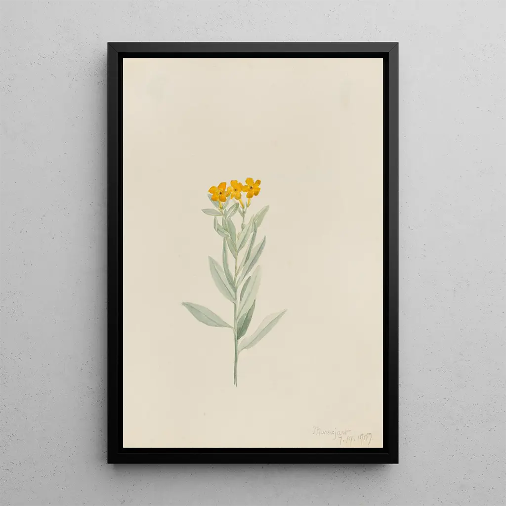 The art print of Lithospermum canescens, created by Mary Vaux Walcott, immerses us in a floral universe filled with serenity. This piece, both delicate and vibrant, captures the beauty of flowers with remarkable precision. The shades of yellow and green blend harmoniously, evoking the softness of a spring morning. The watercolor technique used by the artist allows for the creation of subtle gradients that bring each petal to life. The overall atmosphere of the canvas invites contemplation, as if each flower tells a story of growth and resilience.