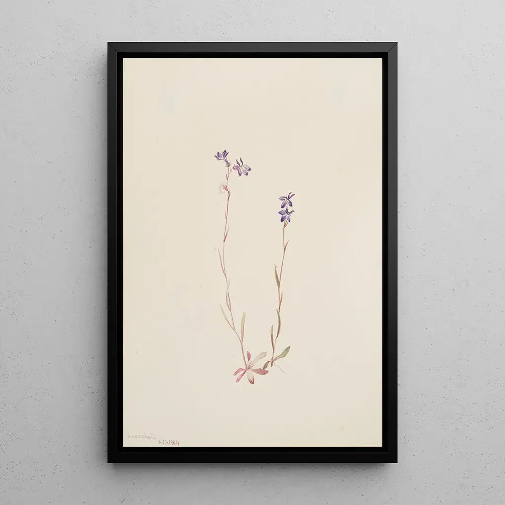 The art print "Lobélie Kalmii" by Mary Vaux Walcott is a celebration of the delicacy and beauty of flowers. With its vibrant blue hues and elegant shapes, this piece transports us to a world where nature blooms with grace. The watercolor technique captures the lightness of the petals and the depth of shadows, creating an almost dreamlike atmosphere. Each brushstroke seems to dance on the paper, inviting the viewer to marvel at this ephemeral bloom. The work evokes an intimate connection with nature, reminding us of life's fragility.