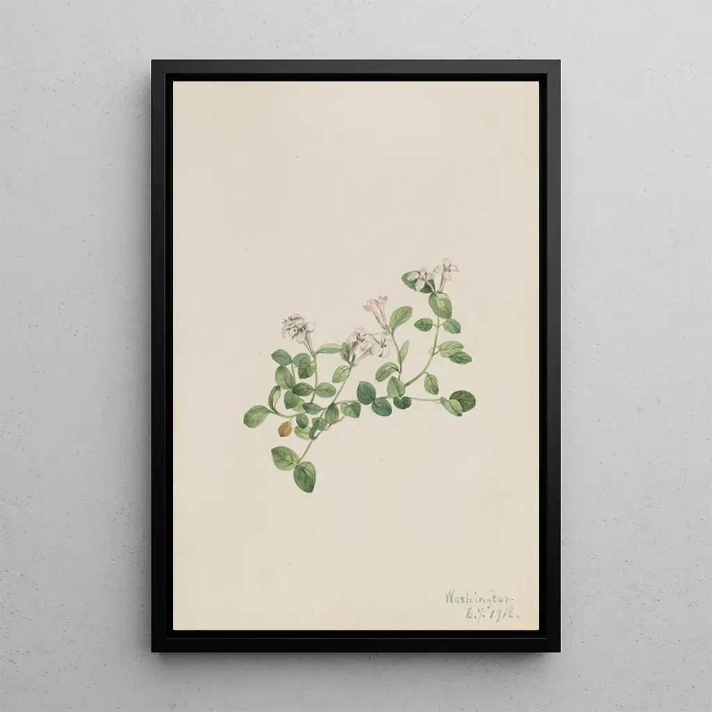 Mitchella rampante : a delicate dance of nature The art print of Mitchella rampante, by Mary Vaux Walcott, immerses us in a botanical universe filled with poetry. This canvas highlights the beauty of the climbing plant's flowers, with shades of vibrant green and touches of pure white. The watercolor technique, used with finesse, captures the delicacy of the petals and the texture of the leaves. The atmosphere conveyed by this artwork is both soothing and inspiring, inviting the viewer to a careful contemplation of nature and its wonders. Mary Vaux Walcott : a pioneer of botanical art Mary Vaux Walcott, an American artist and botanist, marked the early 20th century with her contributions to botanical illustration. Influenced by the artistic movements of her time, she skillfully combined science and art, creating works that are both precise and aesthetic. Her passion for nature led her to explore American landscapes, where she documented local flora with particular attention. Walcott played a key role in preserving biodiversity through her illustrations, making her works a valuable testimony of the era and the importance of conservation. A decorative acquisition with multiple assets The art print of Mitchella rampante is an ideal decorative piece to enhance your interior, whether in a living room, office, or bedroom. Its printing quality guarantees remarkable fidelity to the details of the original artwork, while adding a touch of freshness and nature to your space. The aesthetic appeal of this canvas lies in its ability to harmonize with various styles of decoration, whether contemporary or more traditional. By integrating this art print into your decor, you bring a note of serenity and elegance to your environment.