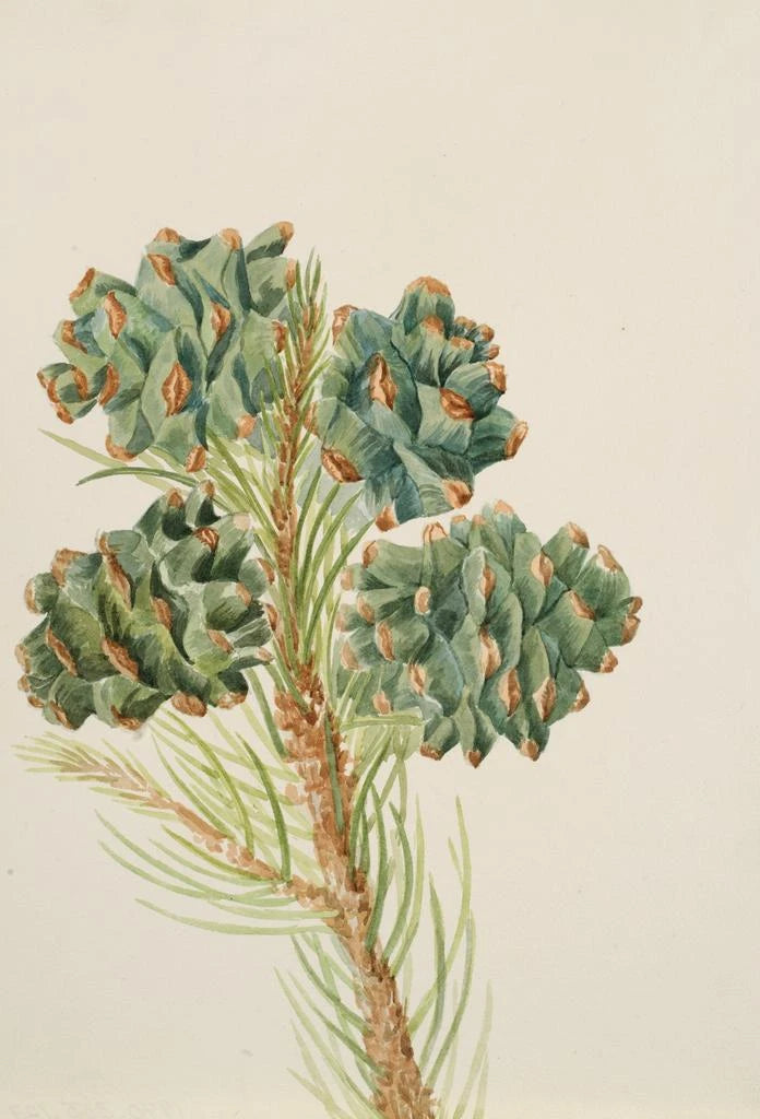 The art print of the Pin to a leaf Pinus monophylla evokes the majesty of forest landscapes and the quiet strength of nature. Mary Vaux Walcott, with her keen artistic eye, manages to capture the essence of this iconic tree, whose green needles and conical cones stand out with elegance. The color palette, ranging from deep greens to warm browns, creates a soothing atmosphere, inviting contemplation. Every detail of this artwork, from the textures of the bark to the nuances of the leaves, reflects the harmony that reigns in the plant world, offering a true immersion in wild beauty.
