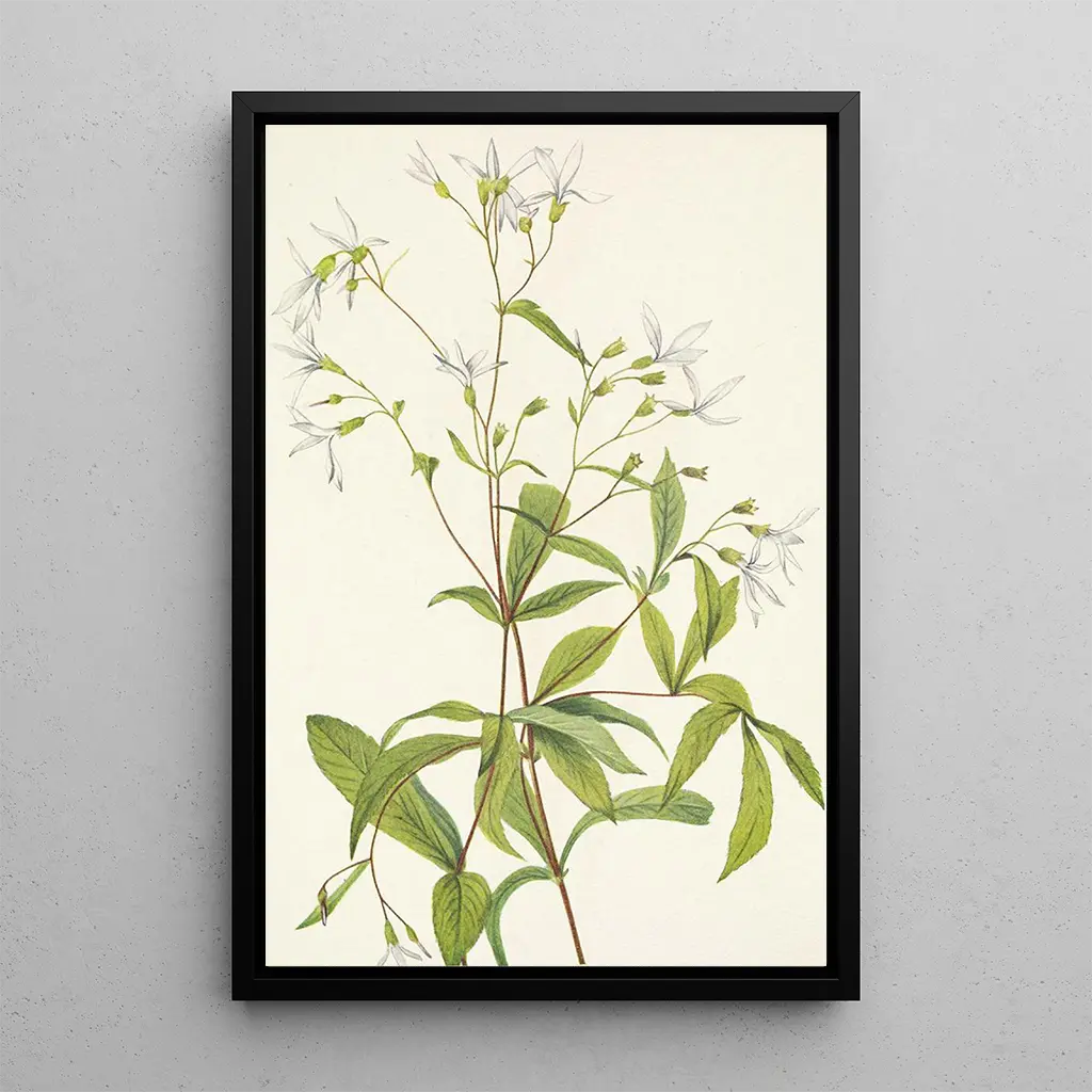 The art print of Porteranthus trifolié, created by Mary Vaux Walcott, offers an immersion into the fascinating world of plants. With its vibrant shades of green and delicate white flowers, this piece highlights the beauty and complexity of this species. The watercolor technique captures the lightness of the petals and the richness of textures, creating a calming and inspiring atmosphere. Each brushstroke seems to capture a moment of life, inviting the viewer to appreciate the splendor of nature.