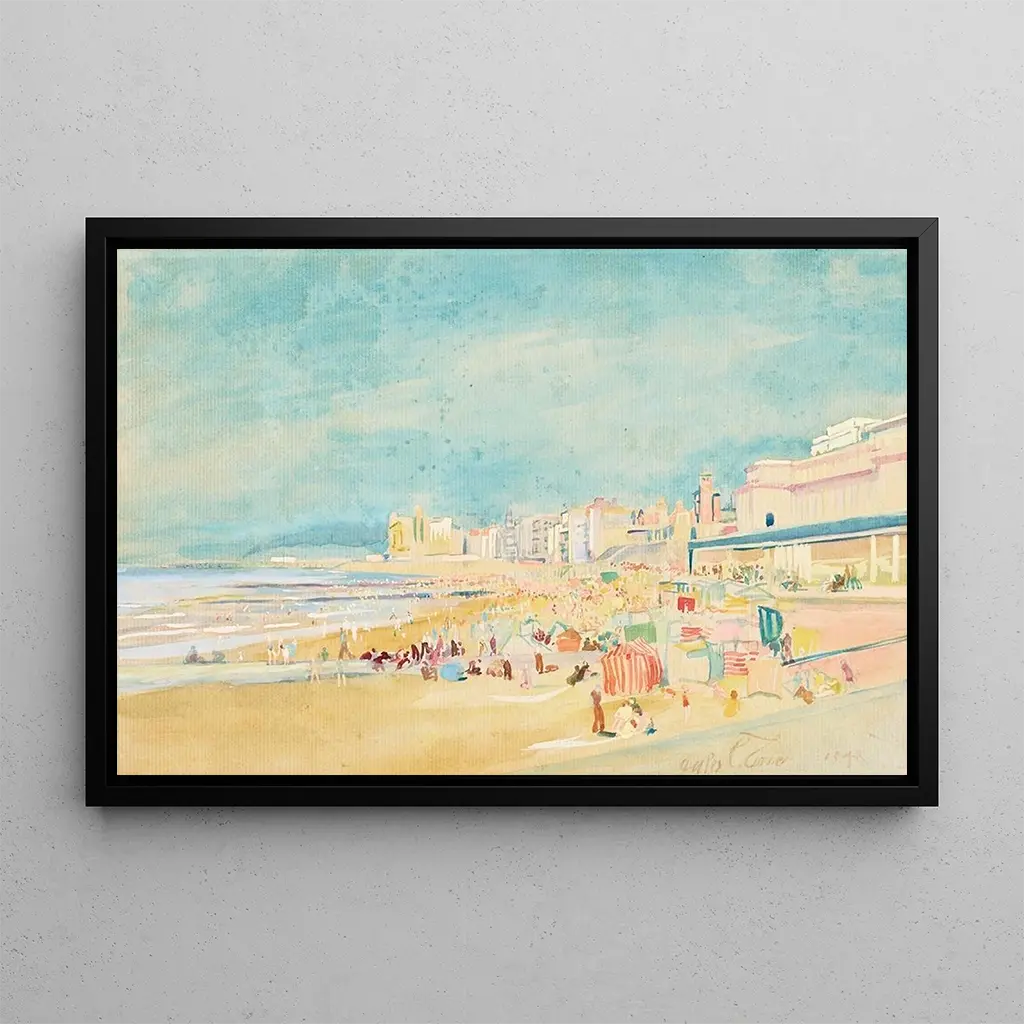 Beach at Ostend: an escape by the sea The canvas "Beach at Ostend" by Julius Collen Turner evokes the gentle warmth of a sunny day on the Belgian coast. The shades of blue and sand blend harmoniously, creating an atmosphere of serenity and relaxation. The figures, painted with an impressionist touch, seem to indulge in simple pleasures, such as strolling along the beach or enjoying the sunshine. Turner's technique, which captures light and movement, makes this scene lively and dynamic, inviting the viewer to feel the sea breeze and the sparkle of the waves. Every brushstroke contributes to the escape that this artwork offers. Julius Collen Turner: an artist at the heart of Impressionism Julius Collen Turner, a British painter of the 19th century, is often associated with Impressionism, a movement that revolutionized painting by emphasizing light and color. Turner was influenced by his contemporaries and developed a unique style that is all his own. His works, including "Beach at Ostend," reflect his love for nature and coastal landscapes. By capturing fleeting moments, he immortalized the beauty of everyday scenes, offering a poetic vision of life. Turner thus became an important figure in art history, celebrated for his ability to evoke emotions through his landscapes. A decorative acquisition with multiple benefits Choosing an art print of "Beach at Ostend" is an excellent way to add a touch of freshness and lightness to your interior decor. Whether in a living room, dining room, or office, this canvas will bring a summery and joyful atmosphere. Its printing quality ensures fidelity to the details and colors of the original work, while enhancing the aesthetic of your space. By integrating this art print into your interior, you create a focal point that sparks conversation and invites dreaming, while celebrating the beauty of marine landscapes.