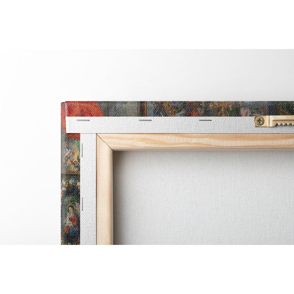 Canvas, matte finish print, mounted on a wooden structure, ready to hang. Framing options available on certain sizes.