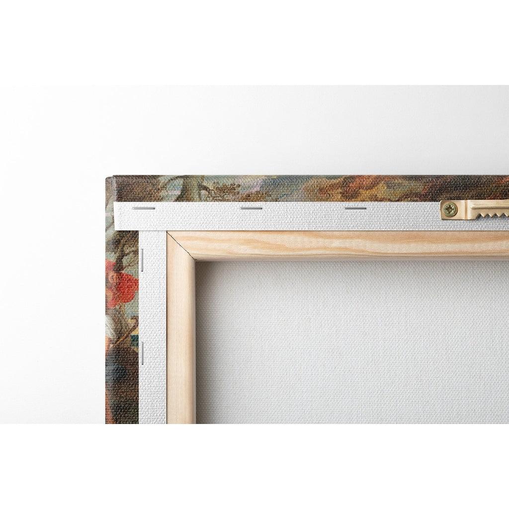Canvas, matte finish print, mounted on a wooden structure, ready to hang. Framing options available on certain sizes.