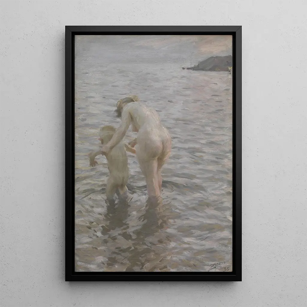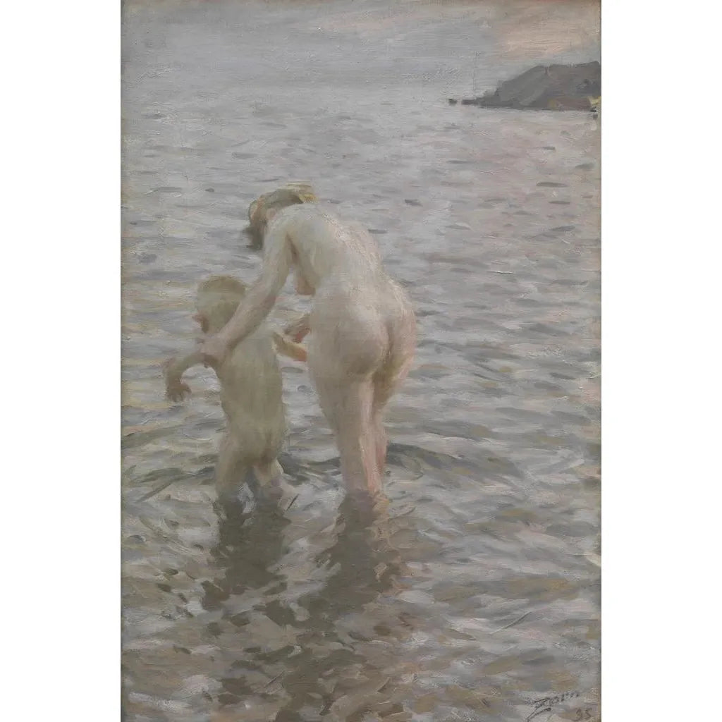 With Mother: A Timeless Tenderness In the artwork "With Mother," Anders Zorn captures a moment of tenderness and intimacy between a mother and her child. The composition, focused on human figures, uses warm and natural colors that evoke the warmth of a home. The fluid brushstrokes and soft light bathing the scene create a serene and soothing atmosphere. Zorn, a master of portraiture, manages to convey a palpable emotion, making this art print of "With Mother" not only a tribute to motherhood but also an invitation to contemplate family bonds. Anders Zorn: a virtuoso of portraiture at the turn of the century Anders Zorn, a Swedish painter active at the end of the 19th and beginning of the 20th century, is renowned for his ability to capture light and texture in his works. Influenced by French Impressionists, he developed a unique style that combines realism and impressionism. Zorn was also a sought-after portrait artist, painting figures of royalty and influential personalities of his time. His work, reflecting a deep understanding of humanity, has marked art history and continues to inspire contemporary artists. The art print of "With Mother" demonstrates his exceptional talent and artistic legacy. A decorative acquisition with multiple assets The art print of "With Mother" is a decorative piece that harmoniously fits into various spaces, whether in a living room, office, or bedroom. Its print quality and fidelity to the original artwork ensure an aesthetic rendering that catches the eye and evokes emotion. By choosing this canvas, you add a touch of tenderness and warmth to your interior, while celebrating the beauty of family relationships. This piece is not only a decorative choice but also a true testament to Anders Zorn's timeless art.