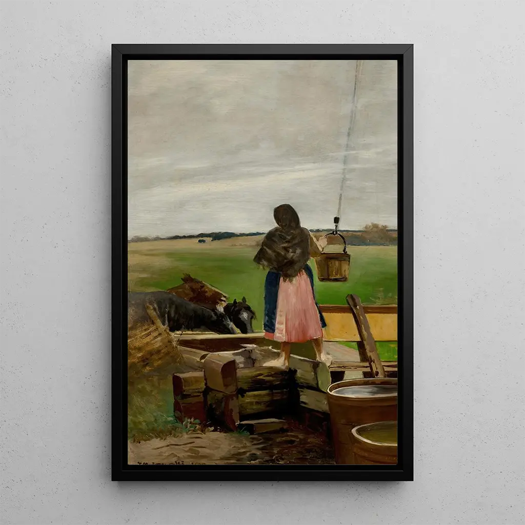 A Girl by a Well: A Delicate Vision of Youth and Beauty. In "A Girl by a Well," Jacek Malczewski depicts a scene filled with poetry and serenity. The soft light bathing the young girl, along with the pastel colors, creates a dreamy and nostalgic atmosphere. The composition, centered on the female figure, evokes intimacy and vulnerability, while the well symbolizes both the source of life and mystery. This art print, rich in detail, invites attentive contemplation, revealing the subtleties of human emotion and the ephemeral beauty of youth. Jacek Malczewski: The Artist at the Heart of Polish Symbolism. Prolific artist, Jacek Malczewski, born in 1854, is recognized for his central role in the development of symbolism in Poland. His career, spanning several decades, is marked by a constant exploration of themes of identity, mythology, and spirituality. Malczewski draws inspiration from Polish folk traditions while incorporating European influences, allowing him to create a distinctive and personal style. "A Girl by a Well" is one of his emblematic works, illustrating his talent for capturing the beauty and depth of human emotions. A decorative art print with multiple virtues. The reproduction of "A Girl by a Well" is a charming addition to any interior decor, whether in a living space, office, or bedroom. Its print quality and attention to detail ensure remarkable fidelity to the original artwork, while adding a touch of elegance and softness. This art print, with its delicate representation of youth, invites dreaming and contemplation, creating a soothing and inspiring atmosphere. By choosing this art print, you enrich your environment with a piece of art that celebrates the beauty and fragility of life.
