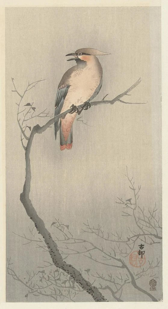 Jaseur du Japon sur branche : an art print of a moment of grace suspended
