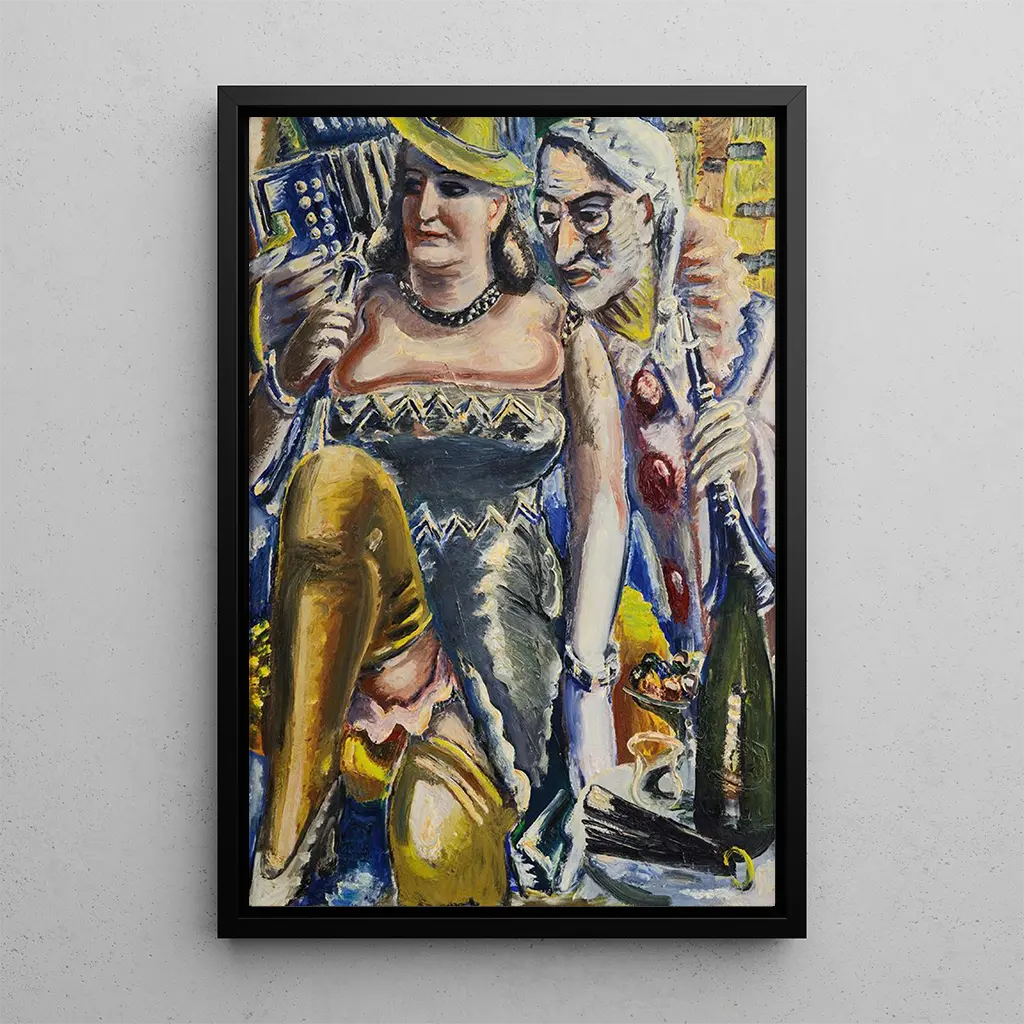 The art print of the "Double portrait of the Carnival artist and woman" is a decorative item that will brighten any space, whether a living room, office, or bedroom. Its print quality and fidelity to the original colors make this canvas an ideal choice for art and decor enthusiasts. The aesthetic appeal of this work lies in its ability to bring a touch of dynamism and joy to your interior. By choosing this art print, you opt for a unique piece that will inspire admiration and conversations, while celebrating the festive spirit of the carnival.