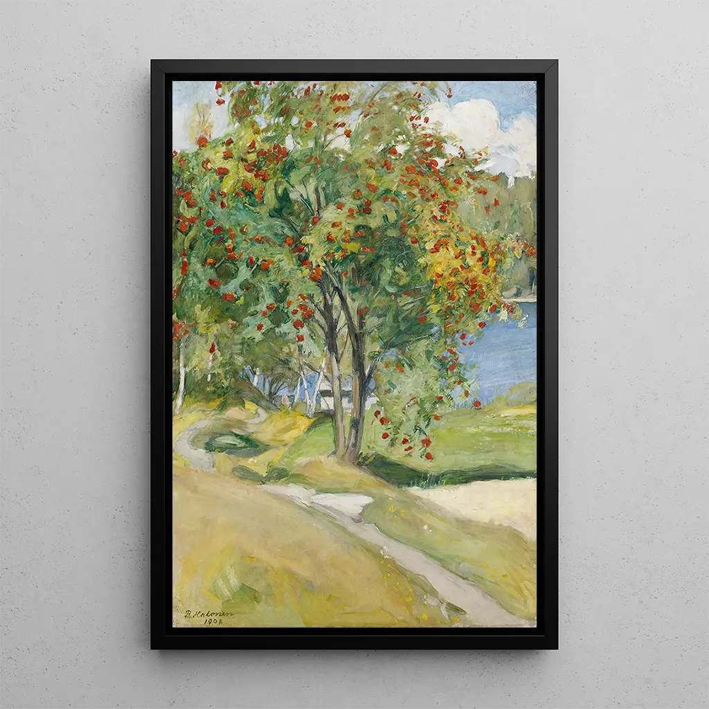 Pekka Halonen, né en 1865, est l'un des artistes les plus influents de la Finlande, connu pour ses paysages qui célèbrent la nature sauvage de son pays. Formé à l'Académie des beaux-arts d'Helsinki, il a été marqué par le mouvement national romantique, cherchant à capturer l'âme de la Finlande à travers ses œuvres. Halonen a su intégrer des éléments de la culture finlandaise dans son art, tout en s'inspirant des grands maîtres européens. "Sorbier" témoigne de son amour pour la nature et de son habileté à traduire la beauté des paysages finlandais en une peinture vibrante et évocatrice.