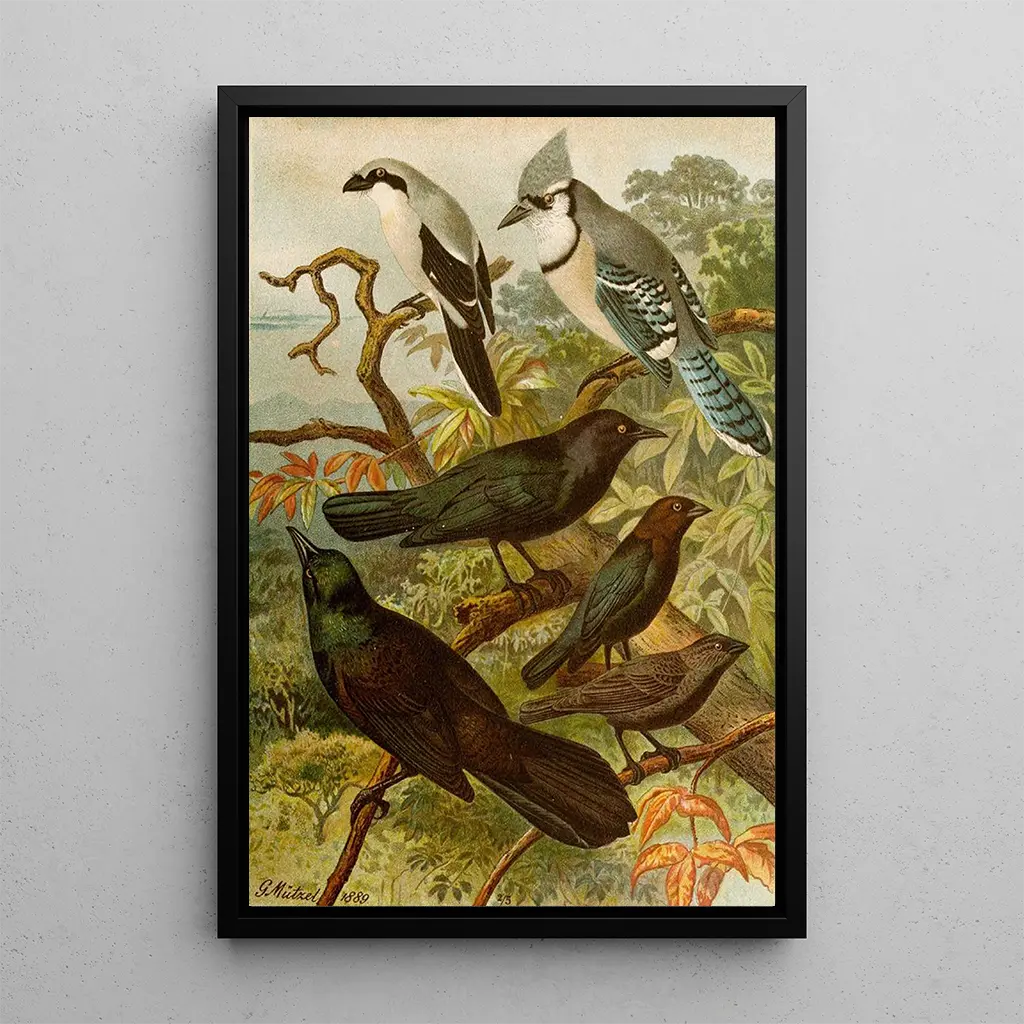The world of North American birds pl18: an immersion into avian wildlife The art print of the painting "The world of North American birds pl18" by Gustav Mützel transports us to the heart of North American natural landscapes. This masterpiece, rich in colors and details, highlights a variety of birds in an enchanting setting. The vibrant hues of the plumage contrast with the soft shades of the backgrounds, creating a captivating visual harmony. Mützel's technique, combining precision and sensitivity, evokes an atmosphere of tranquility and wonder, inviting the viewer to explore the subtleties of avian life. Gustav Mützel: a pioneer of ornithological art print Gustav Mützel, active in the 19th century, is an emblematic figure of the naturalist movement, distinguished by his passion for ornithology. His career is marked by in-depth research on birds, which he translated with great finesse into his works. Mützel was influenced by scientific advances of his time, enriching his understanding of the species he depicted. His paintings, such as "The world of North American birds pl18," are not only illustrations but also testimonies to the richness of biodiversity, reflecting the importance of nature in art. A decorative acquisition with multiple advantages Choosing an art print of the painting "The world of North American birds pl18" is an excellent way to bring a touch of nature to your living space. Whether in a living room, office, or bedroom, this canvas enhances your decor with a note of freshness and elegance. Its printing quality ensures remarkable fidelity to the details and colors of the original work, guaranteeing a strong visual impact. By integrating this art print into your interior, you create an inspiring environment that celebrates the beauty of avian wildlife and invites contemplation.