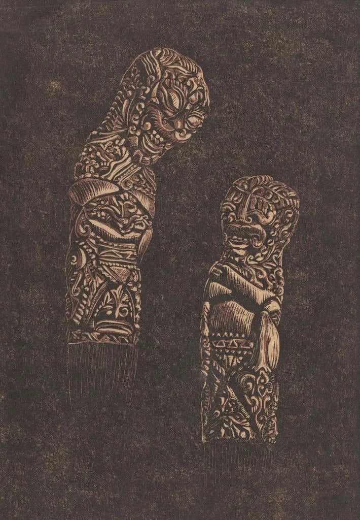 La reproduction Deux poignées de kriss de Reijer Stolk nous plonge dans un univers où les formes et les textures s’entrelacent avec délicatesse. Les poignées, finement sculptées, sont mises en valeur par un jeu de lumière subtil qui souligne leur élégance. Les couleurs, principalement des tons sombres rehaussés de reflets dorés, créent une atmosphère mystérieuse et captivante. La technique de Stolk, qui mêle réalisme et sensibilité, invite le spectateur à contempler non seulement l’objet, mais aussi l’histoire qu’il véhicule, évoquant un héritage culturel riche et fascinant.