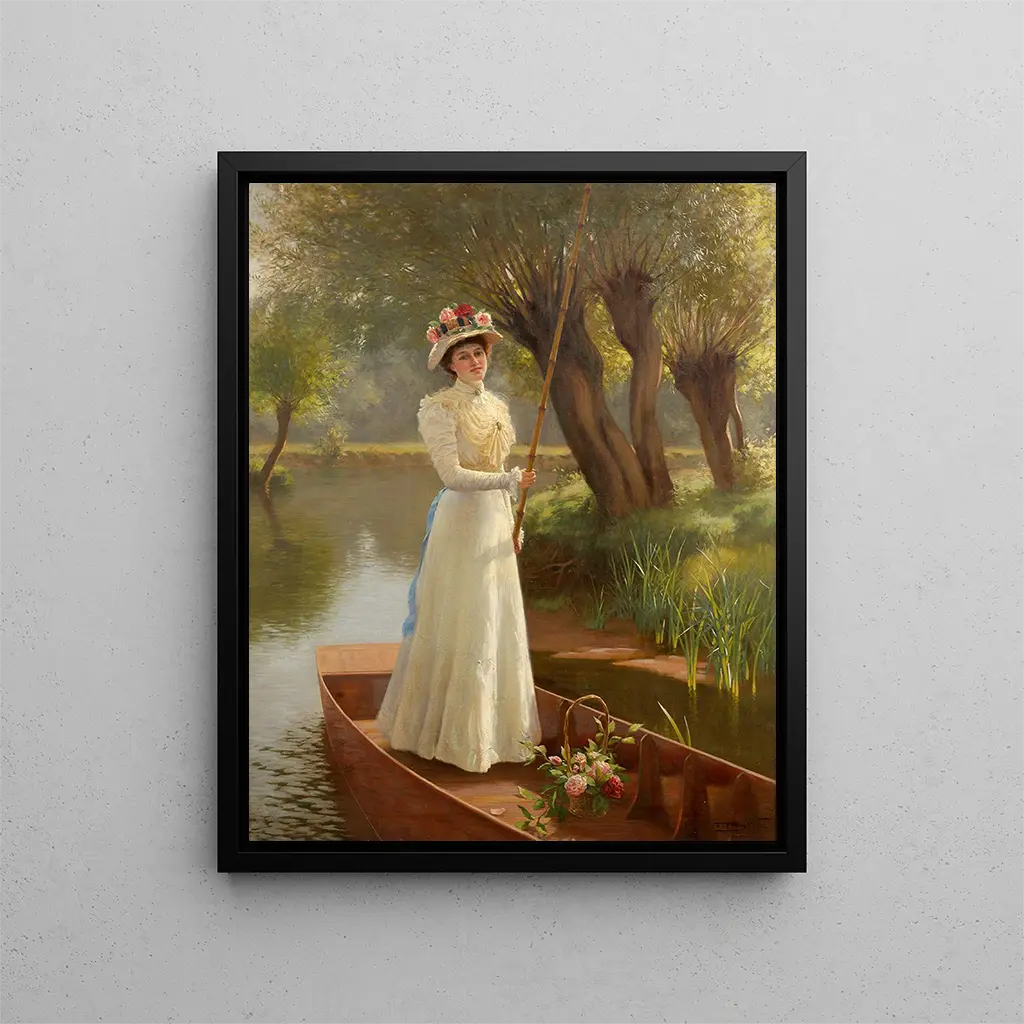In the fascinating world of art, some works manage to capture the very essence of a moment, an emotion, a landscape. "Art print Promenade en barque sur la Tamise - Frank Percy Wild" is one of those creations that transport the viewer to the heart of natural beauty and the tranquility of an afternoon on the famous London river. This piece, imbued with serenity, evokes both the sweetness of life and the harmony between man and nature. Contemplating this scene, one almost feels the gentle movement of the waters and the caress of a light breeze, an invitation to escape the hustle and bustle of daily life and immerse oneself in a world of grace and poetry. Style and uniqueness of the work Frank Percy Wild's work stands out for its masterful use of light and color. In "Art print Promenade en barque sur la Tamise," delicate shades of blue and green blend to create a soothing atmosphere, where the reflections of light on the water seem to dance under the influence of the wind. The meticulous details of the characters, trees, and buildings lining the river testify to attentive observation of the natural world. Wild manages to bring each element of the composition to life, making the painting both vibrant and timeless. This attention to detail, coupled with a harmonious color palette, gives the work emotional depth that resonates with anyone who takes the time to admire it. The artist and his influence Frank Percy Wild, a British painter of the 19th century, established himself as one of the masters of landscape painting. Influenced by the major artistic movements of his time, he developed a unique style that combines realism and impressionism. His passion for nature and his desire to capture the ephemeral beauty of landscapes led him to explore various environments, but it is undoubtedly the Thames that particularly inspired his work. By depicting this iconic river, Wild does not merely portray a simple panorama; he manages to evoke memories, sensations, and an atmosphere that transcends time. His legacy endures, influencing many