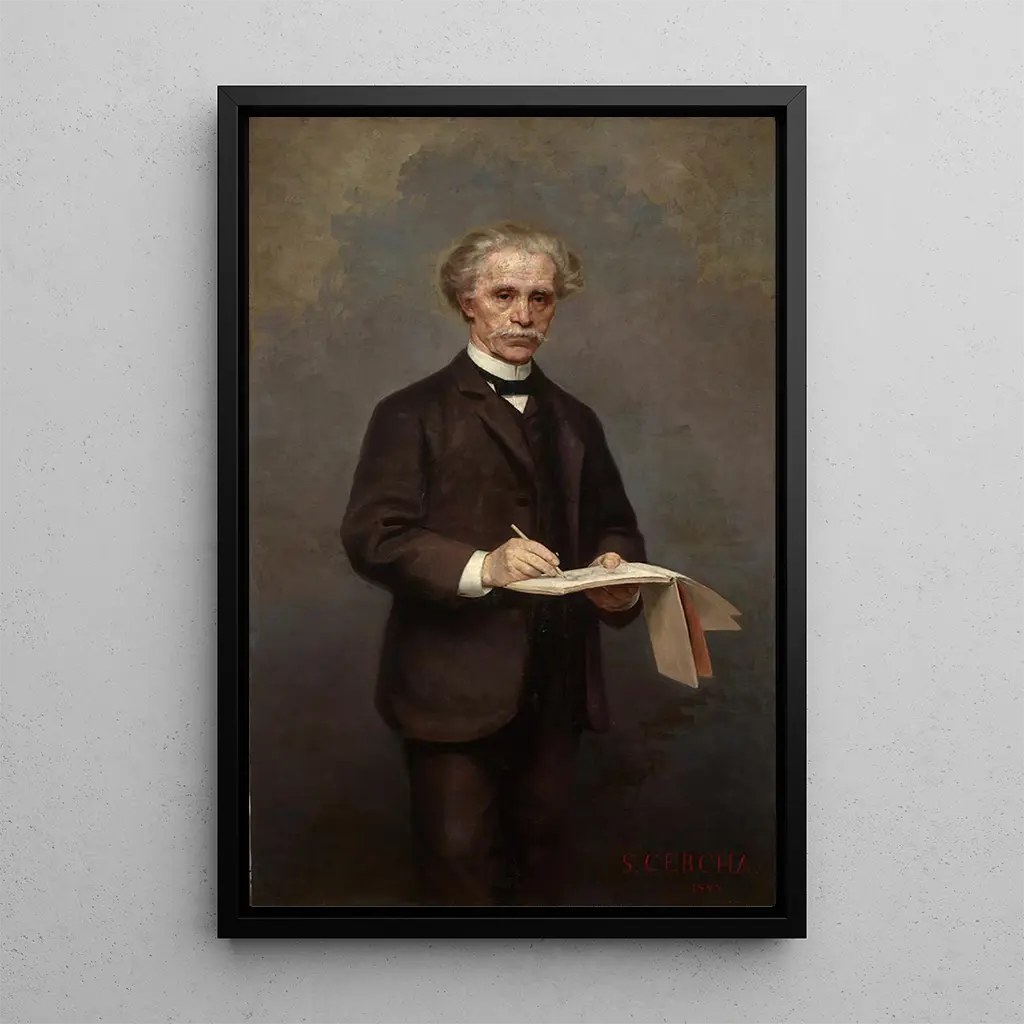 Portrait of Maksymilian Cercha: a glimpse into family heritage The "Portrait of Maksymilian Cercha" is a work that evokes the depth of family bonds through a striking representation. The canvas highlights the face of Maksymilian, whose thoughtful expression and penetrating gaze captivate instantly. Warm colors and delicate shadows create an intimate atmosphere, while the balanced composition emphasizes the dignity of the subject. Every detail, from facial features to clothing textures, testifies to the artist's craftsmanship and his desire to pay tribute to his model. Stanisław Cercha: an artist dedicated to emotion Stanisław Cercha, an emblematic figure of Polish painting, distinguished himself with his unique approach to portraiture. Operating within a rich artistic context, he was influenced by currents of realism and symbolism, seeking to express deep emotions through his works. Cercha dedicated his career to exploring human relationships, and the "Portrait of Maksymilian Cercha" is a perfect example. By capturing the essence of his subject, he offers a reflection on identity and family heritage, while aligning with an artistic tradition that values authenticity. A decorative art print with multiple virtues The reproduction of the "Portrait of Maksymilian Cercha" makes a valuable addition to your interior decor, whether it is an office, a living room, or a bedroom. Its exceptional print quality guarantees remarkable fidelity to the details of the original artwork, allowing you to fully appreciate the artist's mastery. By integrating this art print into your space, you bring a touch of elegance and authenticity, while celebrating Polish artistic heritage. This portrait, full of emotion, is an invitation to reflection and admiration, turning each gaze into a moment of contemplation.