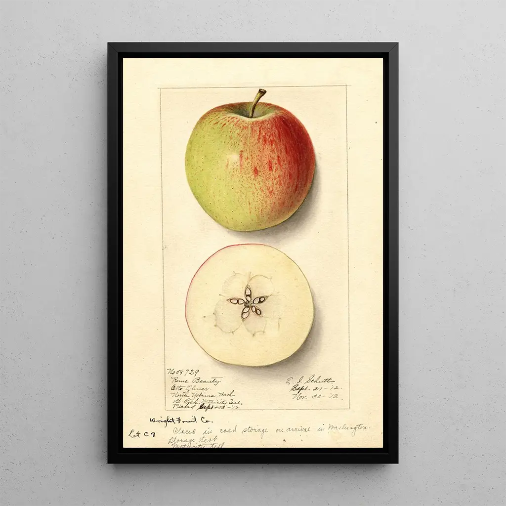 Malus domestica Rome Beauty: A celebration of blooming nature The art print Malus domestica Rome Beauty by Ellen Isham Schutt evokes a lush garden where apple trees flourish under a azure sky. The vivid colors and delicate details of the flowers create an atmosphere of serenity and joy. Schutt's technique, blending watercolor and drawing, brings each petal and leaf to life, making the work almost tactile. This painting invites the viewer to immerse themselves in the ephemeral beauty of nature, to contemplate the gentle passing of seasons, and to appreciate the simplicity of floral wonders. Ellen Isham Schutt: A pioneer of American floral art Ellen Isham Schutt, active at the end of the 19th century, is recognized for her works capturing the beauty of flowers and fruits. Influenced by the American floral art movement, she mastered the combination of botanical accuracy and artistic sensitivity. Her creations, often inspired by the surrounding nature, reflect a time when art and science intertwined. Schutt contributed to popularizing floral art as a distinct genre, leaving a lasting legacy in the art world. A decorative acquisition with multiple advantages The art print of the Malus domestica Rome Beauty painting is an ideal choice to enhance your interior, whether in a living room, office, or bedroom. Its faithful print quality and vibrant colors bring a touch of freshness and vitality to any space. By choosing this canvas, you add an element that is both artistic and soothing to your decor, capable of captivating your guests' attention while creating a warm and welcoming atmosphere.
