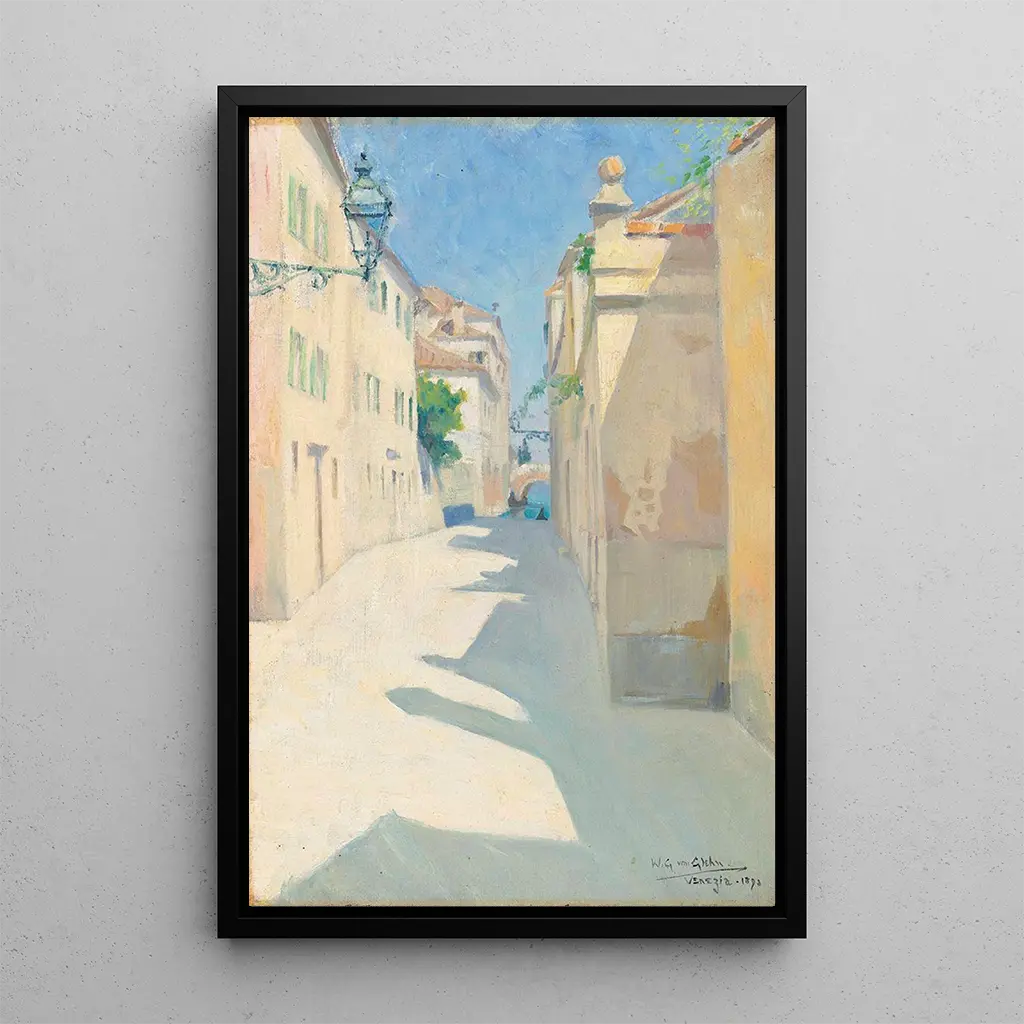 Dans cette art print de Une ruelle à Venise, Wilfrid Gabriel de Glehn nous transporte au cœur des canaux et des ruelles étroites de la ville des Doges. Les couleurs vibrantes et les jeux de lumière sur l’eau évoquent la magie de Venise, où chaque coin de rue raconte une histoire. La composition dynamique, avec des ombres et des reflets, crée une atmosphère vivante, presque palpable. Glehn réussit à capturer l’essence de cette ville unique, où le passé et le présent s’entrelacent, offrant au spectateur une invitation à explorer ses mystères.
