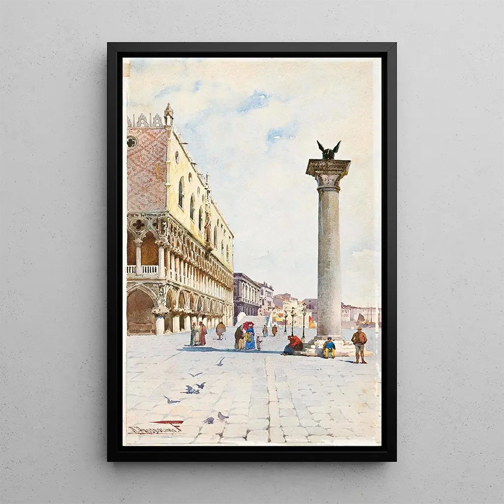 The art print of the Palais des Doges, by Alberto Prosdocimi, immerses us in the enchanting atmosphere of Venice. This canvas, rich in detail, captures the elegance of the arches and the facades of this iconic monument. The warm colors, blending golden hues and shades of blue, evoke the gentle light that bathes the city at dawn. Prosdocimi's technique, combining realism and impressionism, creates an ambiance that is both lively and nostalgic, inviting the viewer to absorb the Venetian magic.