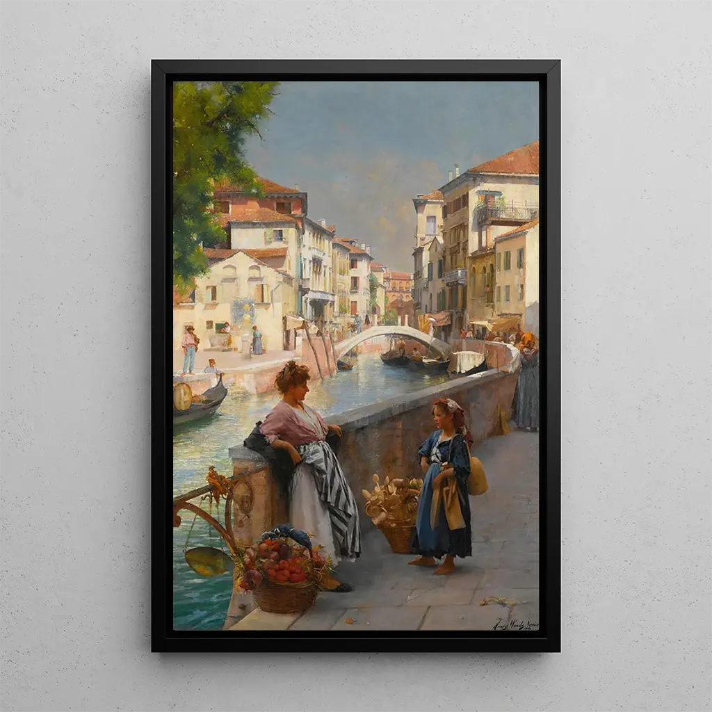 San Trovaso Venice: a vibrant painting full of life and light The art print of San Trovaso, an iconic work by Henry Woods, transports us to the heart of Venice, where reflections in the water and the shimmering colors of the facades create an enchanting atmosphere. The artist's technique, blending oil and delicate brushwork, brings this lively scene to life, where gondolas and passersby coexist in perfect harmony. The shades of blue and ochre intertwine to evoke the magic of this floating city, while the light plays on the surfaces, accentuating the depth and texture of each element. This art print is a true invitation to contemplation, a moment suspended in time. Henry Woods: a master of British landscape art Henry Woods, a 19th-century British painter, is renowned for his landscapes and scenes of everyday life, often bathed in natural light. Influenced by the Impressionist movement, he captured the essence of the places he painted, especially during his travels in Europe. His career, marked by a constant exploration of light effects, made him a respected artist within the artistic community of his time. Woods' works, including San Trovaso, demonstrate a unique sensitivity to the beauty of urban landscapes, while incorporating elements of modern life, giving him an important place in art history. A decorative acquisition with multiple assets The art print of San Trovaso is an ideal decorative piece to enhance your interior, whether in a living room, office, or bedroom. Its print quality and fidelity to the original colors make it an attractive choice for art lovers and Venice enthusiasts. This painting, with its lively and warm atmosphere, will bring a touch of elegance and character to your decor. By choosing this canvas, you opt for a piece that not only beautifies your space but also evokes travel memories and escapism, creating a welcoming and inspiring atmosphere.