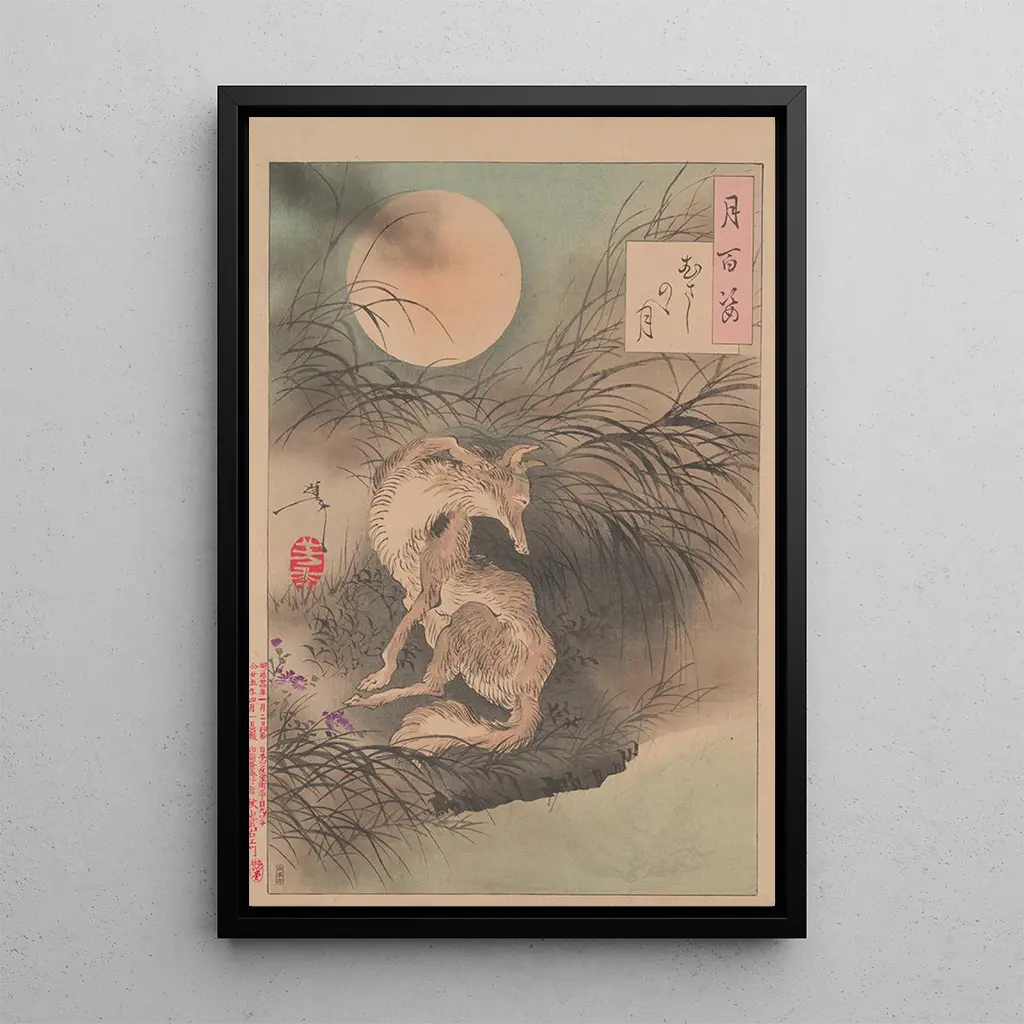 Plaine de Musashi moon: an ode to nocturnal serenity The art print of the canvas "Plaine de Musashi moon" by Tsukioka Yoshitoshi evokes a peaceful atmosphere, where the moon gently illuminates a Japanese landscape. The shades of blue and gray blend harmoniously, creating a delicate contrast with the dark silhouettes of trees and mountains. The ukiyo-e print technique, of which Yoshitoshi is a master, is distinguished by precise lines and refined details. This artwork invites contemplation, transporting the viewer to a universe where nature and mystery meet under the moonlight. Tsukioka Yoshitoshi: a pioneer of ukiyo-e in the 19th century Tsukioka Yoshitoshi, born in 1839, is one of the last great masters of ukiyo-e, a style of Japanese art print that flourished during the Edo period. Influenced by the social and political upheavals of his time, he managed to incorporate modern elements while preserving tradition. His work is marked by a unique sensitivity and meticulous attention to detail, which allowed him to stand out from his predecessors. Yoshitoshi was also inspired by legends and historical tales, giving his creations a narrative depth. His legacy endures, making him an essential figure in Japanese art. A decorative acquisition with multiple assets The reproduction of "Plaine de Musashi moon" is an ideal decorative piece to enhance your interior, whether in a living room, office, or bedroom. Its print quality guarantees remarkable fidelity to the details of the original artwork, while adding a touch of elegance and serenity to your space. The aesthetic appeal of this canvas lies in its ability to create a calming atmosphere, inviting reflection and escape. By choosing this art print, you opt for a piece that not only beautifies your decor but also tells a fascinating story with every glance.