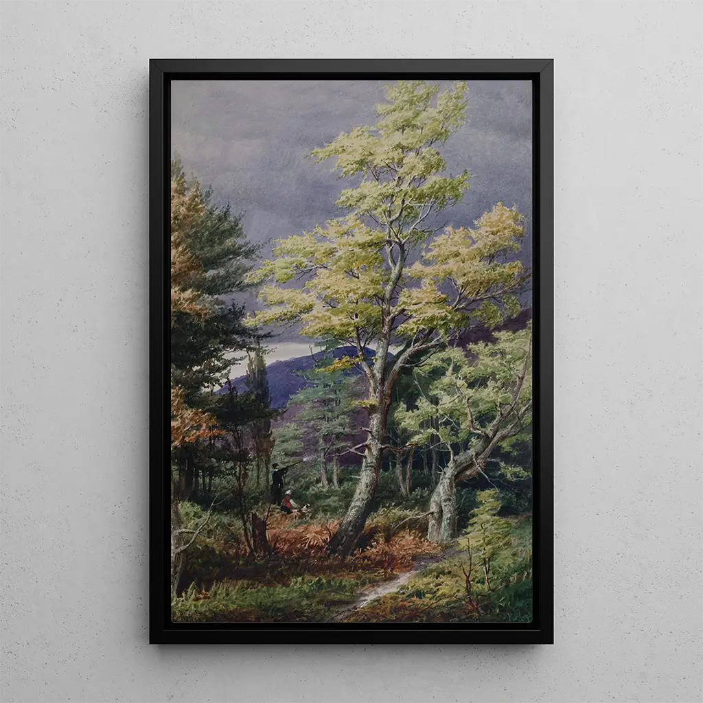 In "Rednal from Cofton Homme pulling," Elijah Walton transports us to a pastoral landscape where nature flourishes in all its splendor. The soft colors and shades of green evoke a calming atmosphere, while the light plays delicately on the elements of the artwork. The harmonious composition, with flowing lines and organic shapes, invites prolonged contemplation. Every detail, from the cloudy sky to the majestic trees, seems to capture a fleeting moment of beauty, making this piece not only a painting but a true window into a tranquil world.
