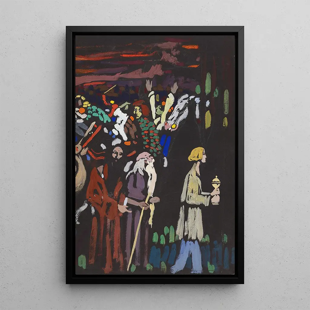 Wassily Kandinsky, an emblematic figure of modern art, played a crucial role in the evolution of abstract art in the early 20th century. Influenced by symbolism and fauvism, he sought to express ideas and emotions through non-representational forms. "Study on Panic" reflects his interest in psychology and emotional reactions, a recurring theme in his work. By incorporating elements of music and spirituality, Kandinsky paved the way for a new understanding of art, where visual experience becomes an inner exploration.