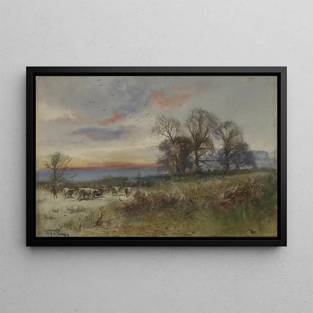 Sir William Fox, a British painter of the 19th century, is known for his representations of rural life and nature. His work is part of the Victorian artistic movement, which emphasized the beauty of landscapes and the simplicity of everyday life. Influenced by the Impressionists, Fox captured the light and atmosphere of his subjects with a unique sensitivity. His career, marked by a constant exploration of rural themes, made him a respected artist whose works continue to inspire art enthusiasts.