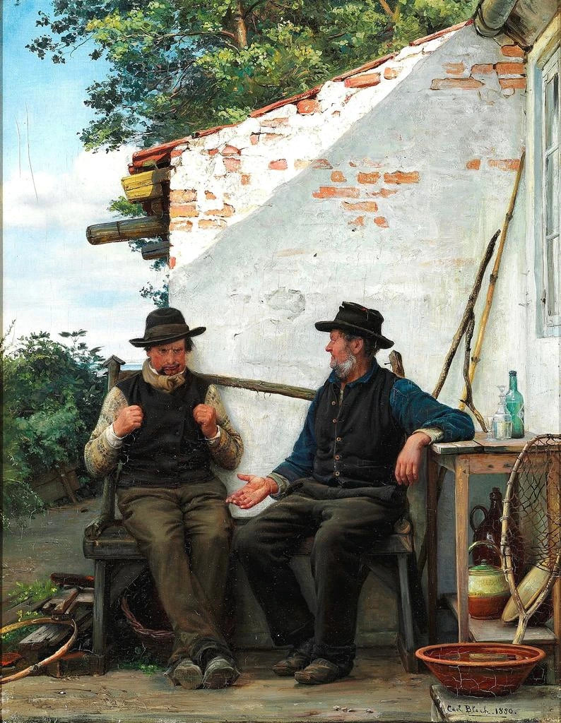 In the fascinating universe of art, some works manage to capture moments of life with such intensity that they transcend time and space. "A Conversation Between Two Fishermen - Carl Bloch" is one of these creations that invites the viewer to immerse themselves in a suspended moment, where everyday life blends with poetry. This piece, both simple and complex, depicts a scene of dialogue between two men by the water, evoking universal themes such as camaraderie, nature, and contemplation. The soft light bathing the composition, along with the expressions of the characters, creates an intimate atmosphere conducive to reflection and escape.