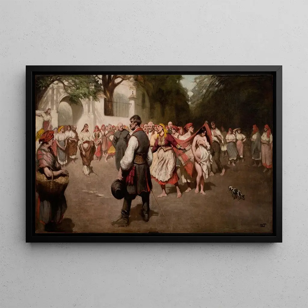 The art print A shameless woman from Bronowice by Włodzimierz Tetmajer immerses the viewer in a lively painting, where joy and melancholy coexist. The vibrant colors and the expressions of the characters capture the essence of Polish village life at the end of the 19th century. Tetmajer's pictorial technique, blending impressionism and realism, adds a dynamic dimension to the scene, inviting viewers to feel the emotions of the protagonists. This work is a true ode to life, where every detail tells a story.