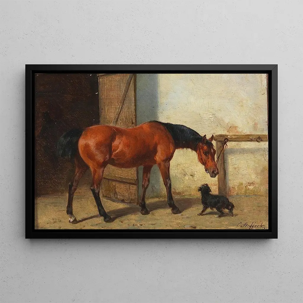 The art print of A good friend is a decorative piece that harmoniously fits into various interiors, whether in a living room, an entryway, or an office. Its printing quality ensures remarkable fidelity to the original work, allowing appreciation of every nuance and expression. By adding this painting to your decor, you bring a touch of warmth and conviviality, while celebrating the unique bond between man and his pet. This canvas, with its timeless charm, will appeal to animal lovers and art enthusiasts alike, making every glance a moment of shared happiness.