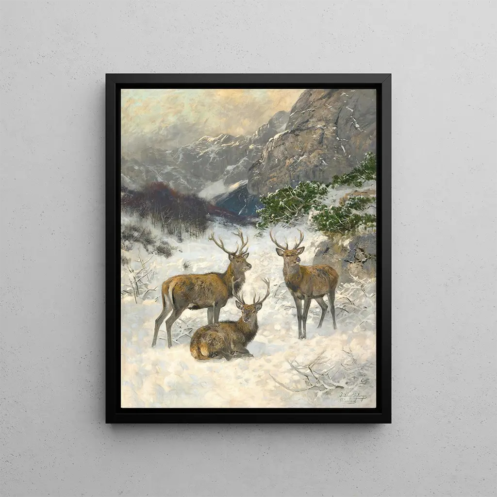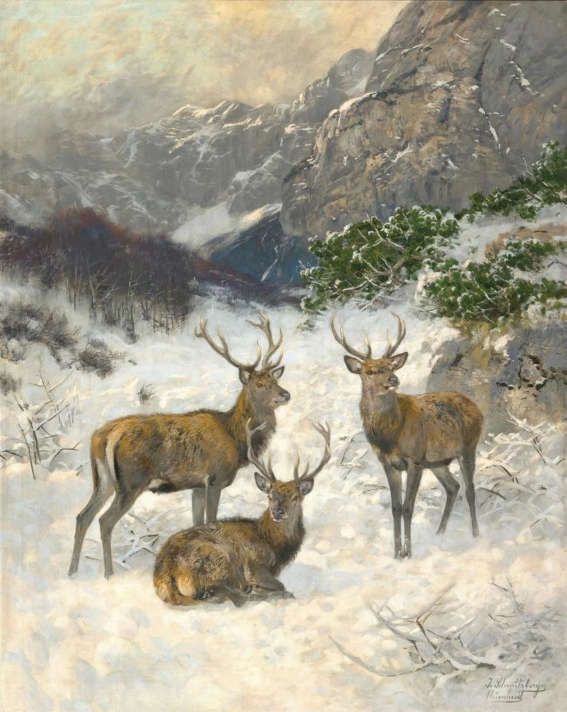 A herd of deer in winter - Josef Schmitzberger Source: Un troupeau de cerfs en hiver - Josef Schmitzberger