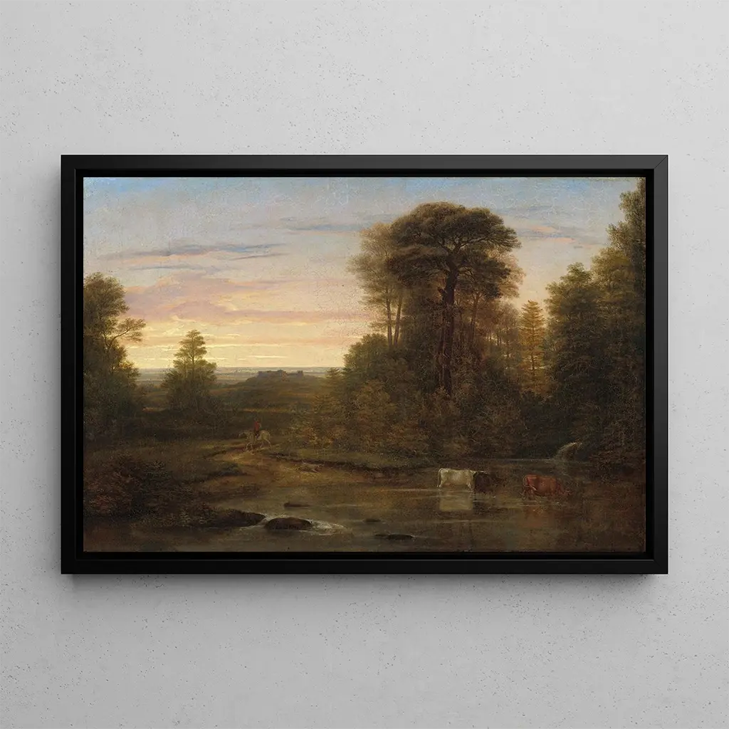 The art print of "A Sunset Landscape" is an ideal choice to enhance your interior, whether in a living room, office, or bedroom. Its palette of warm and soothing colors creates a relaxing ambiance, perfect for unwinding after a long day. The quality of the art print guarantees remarkable fidelity to the original work, allowing you to enjoy its aesthetic appeal daily. By adding this canvas to your decor, you not only bring a piece of art history into your home but also a source of inspiration and serenity.