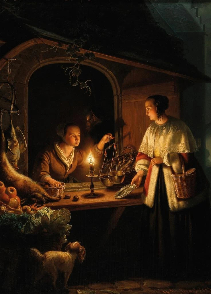 The art print "A Night Market" by Henri de Braekeleer transports us to the heart of a vibrant and lively scene, where the sparkling lights of the stalls illuminate the night. This artwork, rich in detail, captures the energy and excitement of a nocturnal market, where vivid colors blend with shadows, creating a striking contrast. The characters, engaged in their transactions, add a dynamic element to the piece, while the overall atmosphere evokes warm conviviality. Braekeleer's mastery of light brings this scene to life, inviting the viewer to feel the animation of this frozen moment in time.