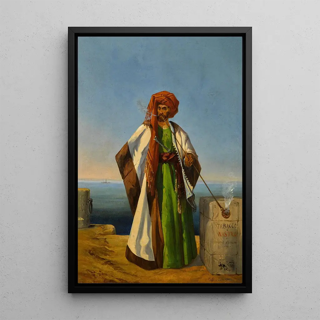 A tobacconist, an iconic art print by Ippolito Caffi, captures a moment of urban life with striking intensity. The painting depicts a man, surrounded by his goods, immersed in a daily activity that resonates with authenticity. The warm, earthy colors, combined with soft lighting, create a welcoming and lively atmosphere. Caffi, with his mastery of details, manages to convey not only the physical appearance of the tobacconist but also the essence of his environment, making this scene both familiar and captivating.