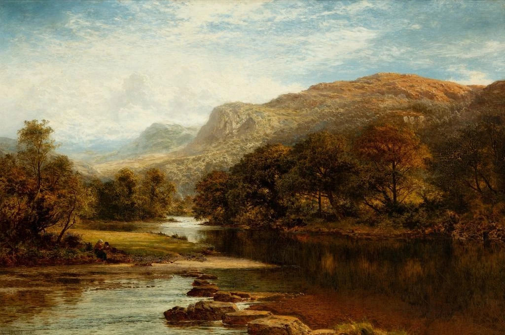 " A Welsh valley near Betws-y-Coed" by Benjamin Williams Leader captures the tranquility of a rural landscape. The lush green hills, bathed in soft light, evoke a peaceful and contemplative atmosphere. Shades of green and blue blend with touches of golden light, creating a visual harmony that invites escape. Leader's technique, characterized by a delicate application of paint, brings to life every element of the art print, from majestic trees to shimmering rivers. This art print is a true ode to the natural beauty of Wales.