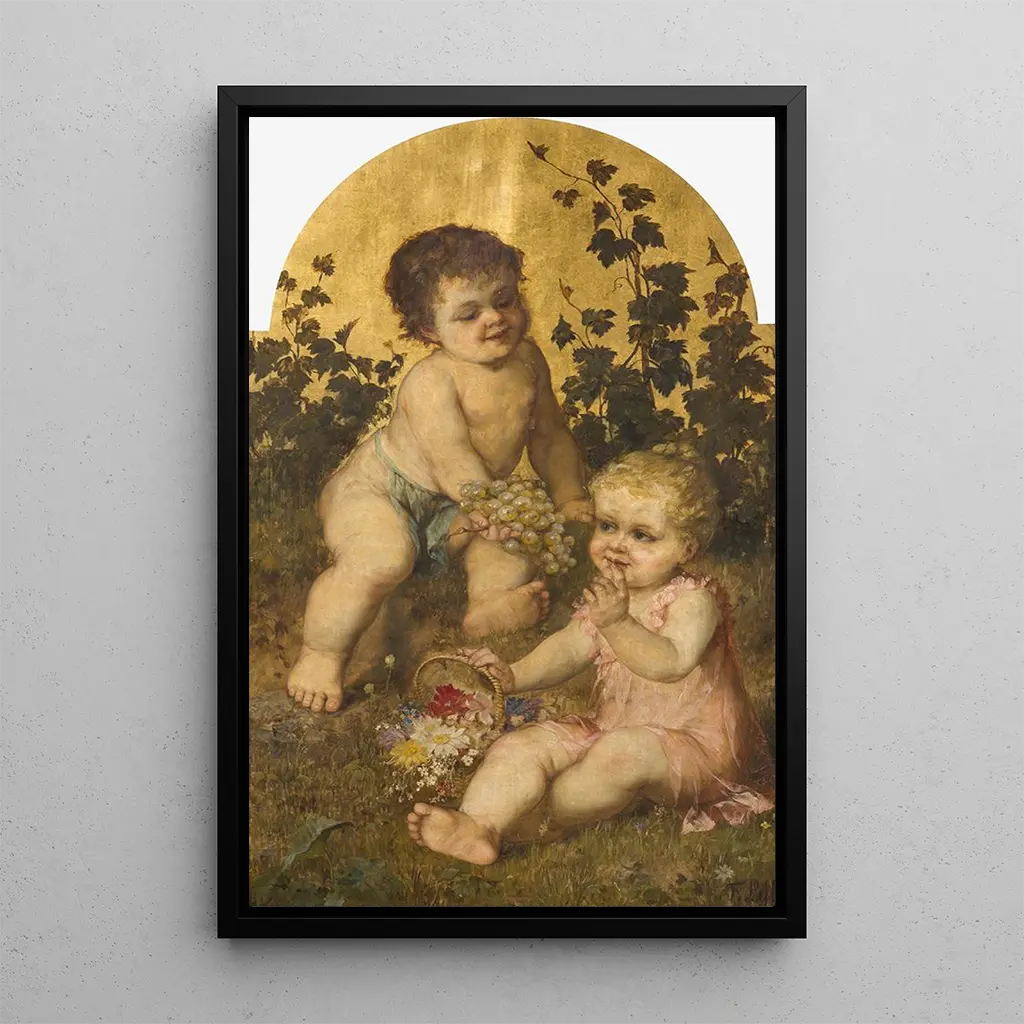 In this art print of Young Vintner, artist Franz Lefler captures the very essence of viticulture through a young man with a determined gaze. The warm, earthy colors, blended with touches of green, evoke the richness of the vineyards and the promise of a bountiful harvest. Lefler's technique, which combines realism and romanticism, creates a lively, almost tangible atmosphere where one can smell the scent of ripe grapes and hear the gentle whisper of the wind in the leaves. This painting, a true ode to the land and its work, invites contemplation and appreciation of ancestral crafts.
