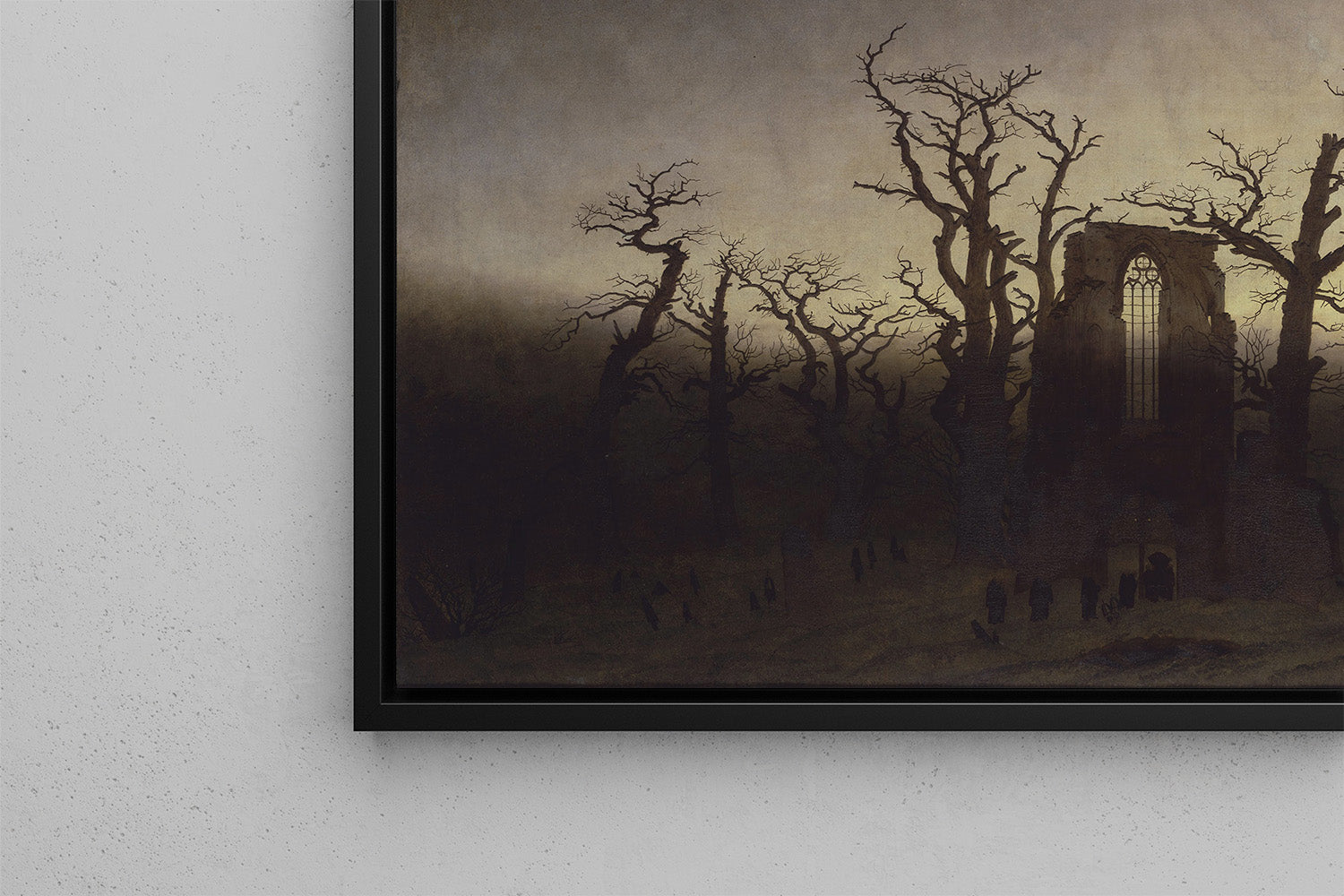 Choosing the art print of L'Abbaye dans le bois de chênes means introducing into your interior much more than a decorative piece. This artwork transforms the space by infusing it with an atmosphere of calm and grandeur. In a living room, it creates an elegant and refined focal point; in an office, it promotes concentration and relaxation; in a bedroom, it inspires serenity and rest.