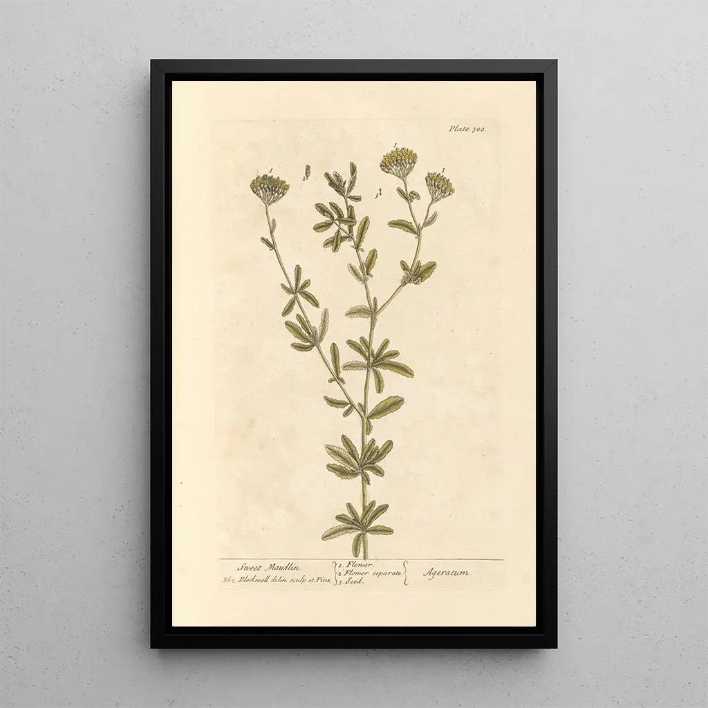 The artwork "Absinthe douce" by Elizabeth Blackwell immerses us in a delicate and refined universe, where every detail is carefully observed. This botanical illustration, created with remarkable precision, highlights the leaves and flowers of absinthe, a plant with both medicinal and mystical virtues. The green and silvery hues, combined with touches of yellow, create a soothing atmosphere and invite contemplation. The copper engraving technique used by Blackwell gives this art print a unique texture and captivating visual rendering, showcasing her exceptional talent as a botanical artist.